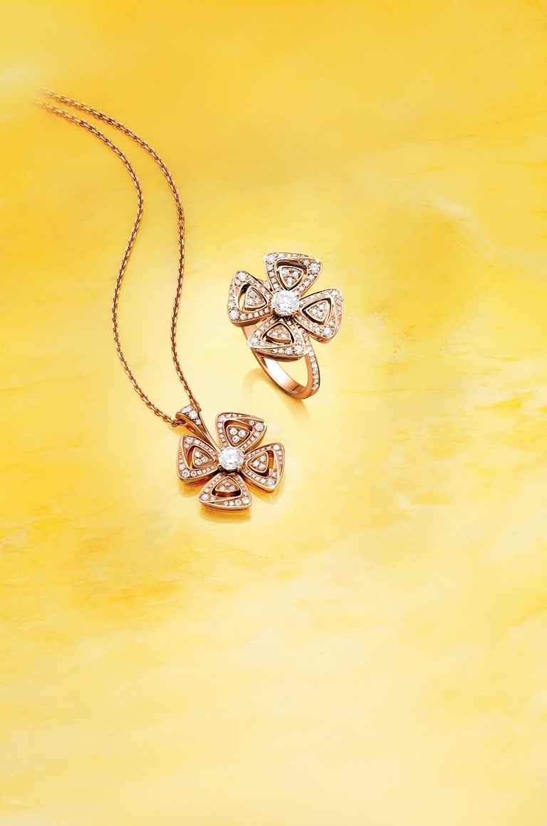 В завораживающих бриллиантовых украшениях запечатлен цветок с четырьмя лепестками — символ страстного римского жизнелюбия. Ставший лейтмотивом коллекции, образ полевого цветка с четырьмя лепестками пришел из римского наследия. Как элемент декора, этот изящный мотив часто использовали во времена Римской Империи, достаточно упомянуть садовые фрески Виллы Ливии, скульптуры Палаццо Массимо, потолочные мозаики усыпальницы Святой Констанции. Своими смелыми формами и немеркнущими бриллиантами новый изящный символ Дома чествует непреходящую красоту вечного города, его искристую радость и обаяние героини Fiorever.