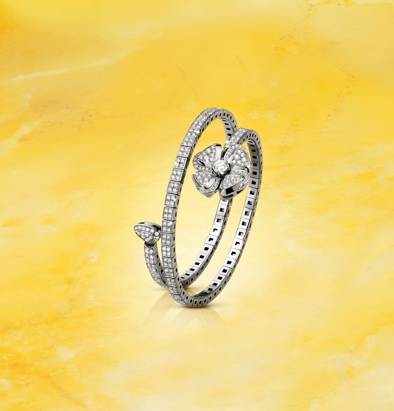 Воплощая стиль la dolce vita, героиня следует своему инстинкту и никогда не идет на компромисс. Ее дни наполнены радостью, а ночи безудержным весельем. Ее жизнь — непредсказуемое приключение. Fiorever — подарок на память, воспоминание, чудный сверкающий цветок, который словно источает пылкую страсть. Свободолюбивая энергия Fiorever лучится сквозь цветок, украшенный бриллиантами высокого качеств. В его сердцевине сверкает роскошный солитер весом от 0.10 до 0.50 карата, окруженный лепестками. У каждого цветка они поднимаются, подчеркивая фирменное умение Bvlgari играть объемом при создании дизайна.