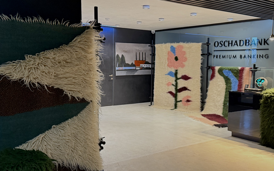 У відділені банку представили інсталяцію з килимів ручної роботи