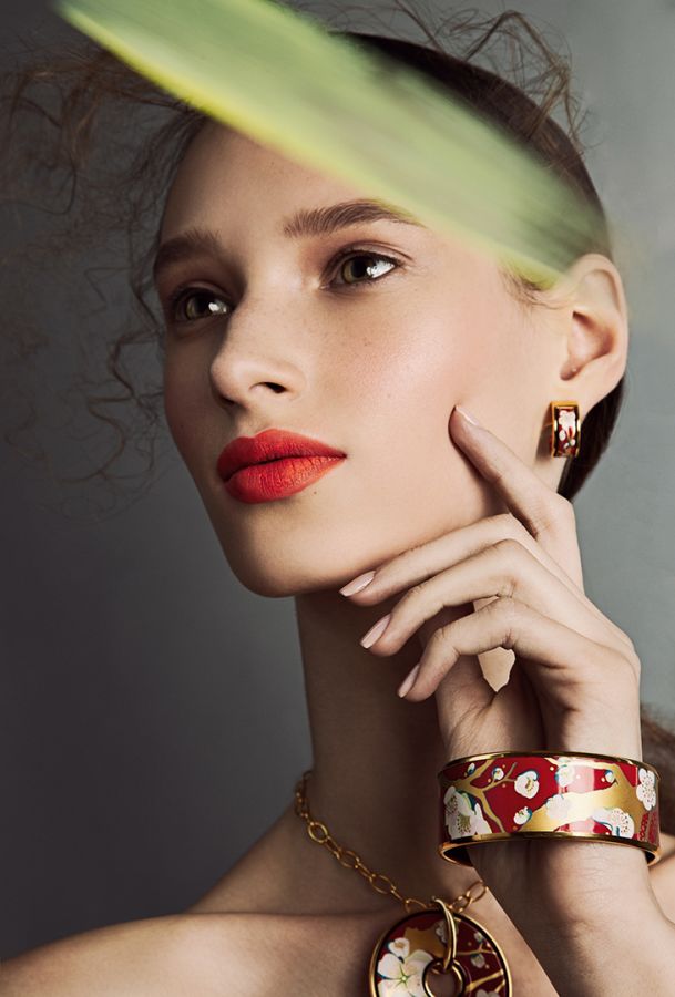 Если вы с головой ушли в предрождественскую суету и рабочие дедлайны, а последние несколько недель перед Новым годом спали по несколько часов, есть возможность сделать так, чтобы в праздничную ночь этого никто не заметил. Деликатный хайлайтер на скулах, веках и по центру лица создаст эффект холеной, как будто подсвеченной изнутри кожи. Вместе с ровным тоном лица и классической красной помадой на губах гости будут уверены, что перед нанесением макияжа вы успели забежать в spa. Лаконичные, но эффектные длинные серьги из белого золота и круглой подвеской, инструктированной драгоценной австрийской эмалью вполне могут стать единственными в ювелирном ансамбле. И тем не менее собрать сотни комплиментов за вечер.