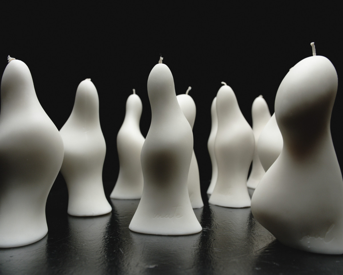 Ключовими елементами колекції є пара об’ємних фігурних свічок, виготовлених із натурального соєвого воску. Вони мають ніжний деревно-фруктовий аромат, що додає композиції глибини. Особлива увага приділена формі виробів: унікальні, нерівні лінії нагадують про красу недосконалості та природність взаємин.