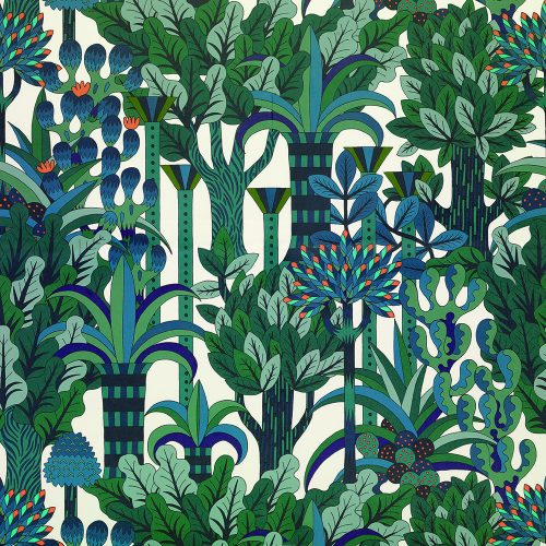 Жаккардовая ткань Be Bop A Lula Dedar с узором из пальмовых деревьев такая летняя и радостная. Она уникальна своей цветовой палитрой: от насыщенно синего с интенсивностью летней ночи до выгоревшего зеленого, переносящего нас в жаркие тропики.