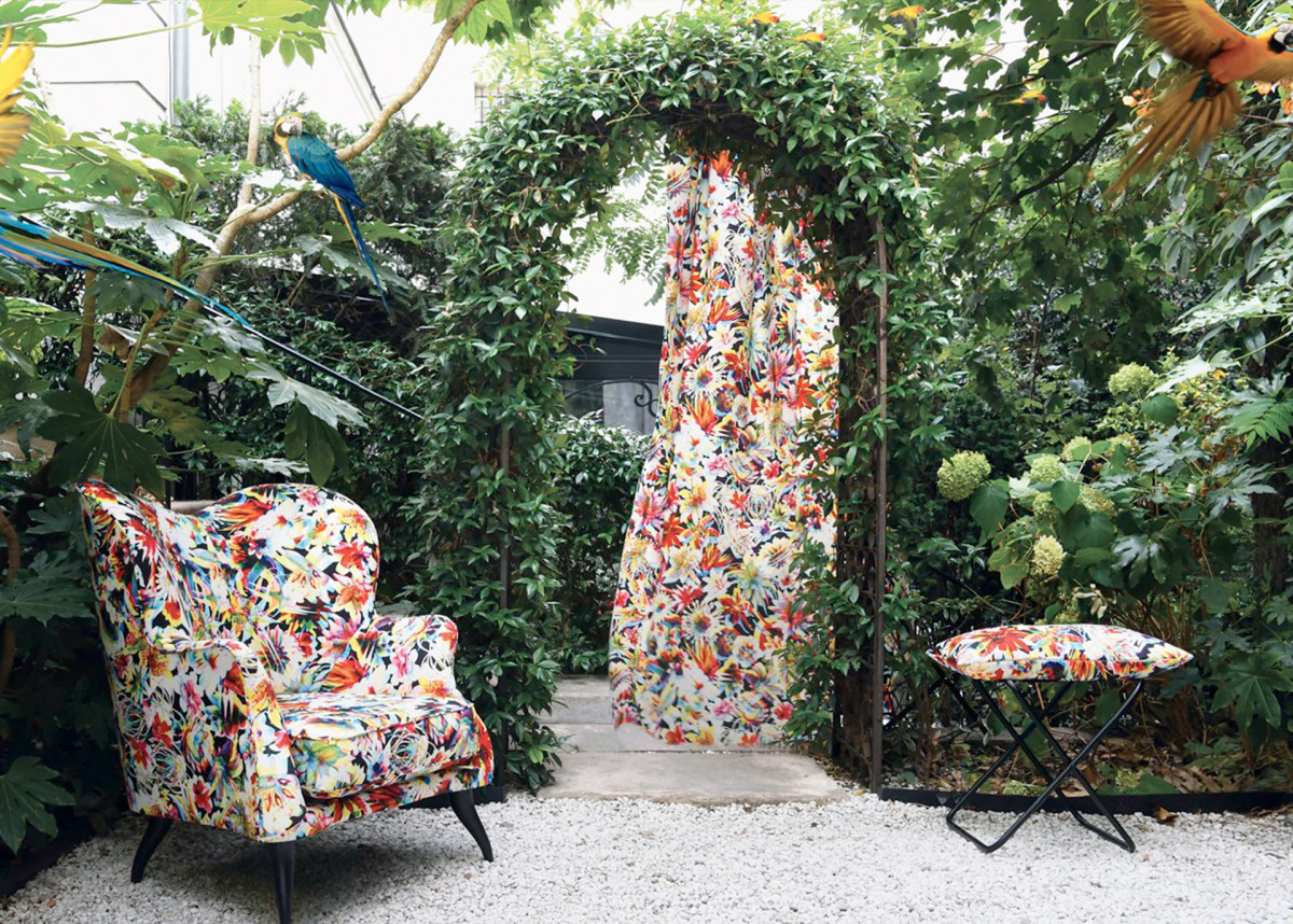 Christian Lacroix в коллекции L`Odyssee изобразили личную интерпретацию Эдема с экзотическими цветами и рощами на тканях и обоях.