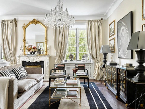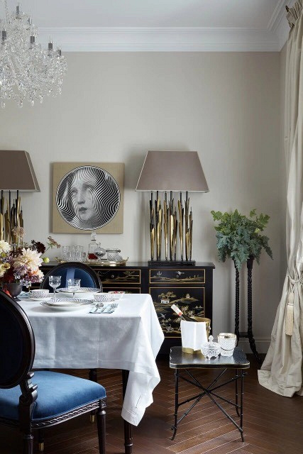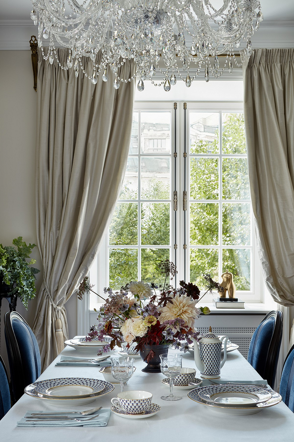 Квартира в бывшем доходном владении — «Волоцком доме» у Патриарших прудов — пример интерьера, в котором классика, барокко, немного шинуазри, крупные формы и тонкие детали сложились в органичный живой образ, без лишнего пафоса и вычурности.