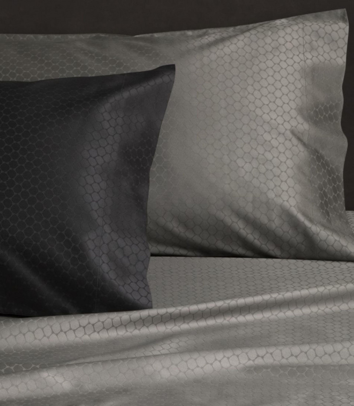 Традиционным материалом для пошива постельного белья считается хлопок. Среди хлопочато-бумажных тканей стоит особенно отметить сатин. Называемый «хлопковым шелком», этот материал обладает глянцевой гладкостью и в то же время обволакивает теплом в холод — идеально для зимы. Наш фаворит — бренд Ivano Redaelli, чьи сатиновые коллекции часто украшает лаконичный и элегантный узор.