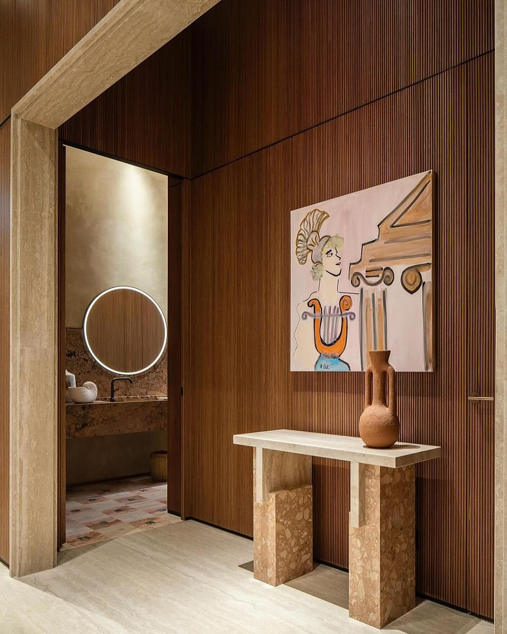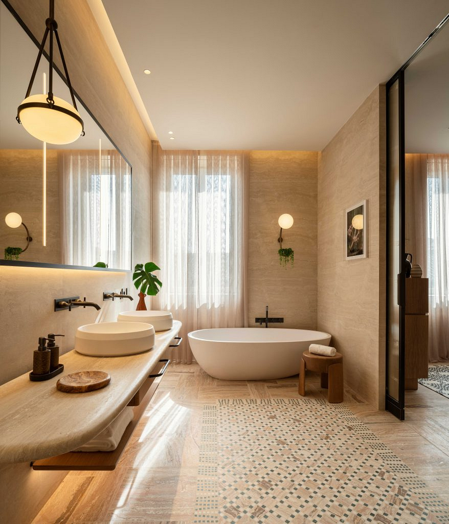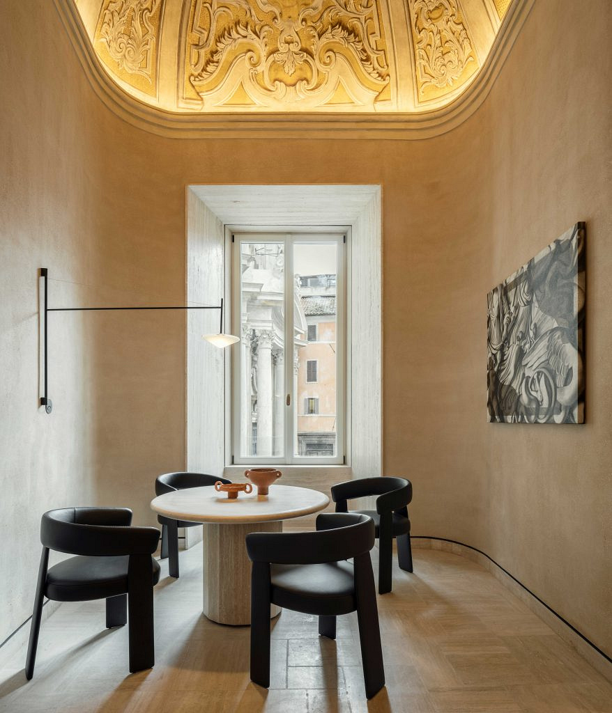 Майстерність оздоблення, циркулярні елементи, нетривіальні пастельні кольори, традиційні для Італії матеріали (такі як травертин, мармур чи штукатурка кокчіопесто) безліч рослин, а також вишукані твори мистецтва, підбір яких курувала арт-консультант Федеріка Сала, — всі ці деталі створюють ефект єднання з природою, а крім того відображають сучасне бачення як класичної римської культури, так і багатої історії Palazzo Salviati Cesi Mellini.