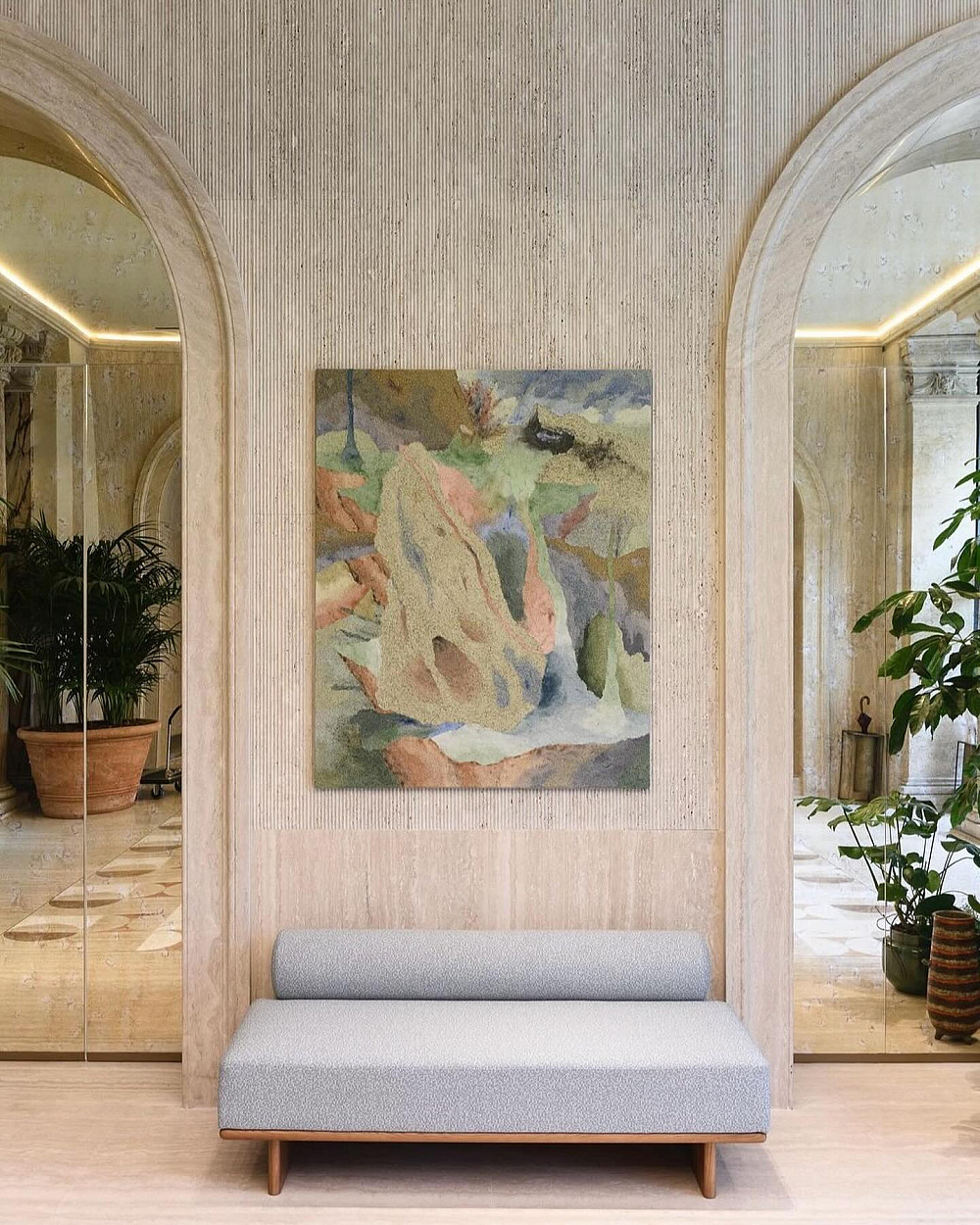 Вражаючі центральні сходи та головний фасад будівлі, що виходить на жваву вулицю Віа-дель-Корсо, внесені до списку ЮНЕСКО. Тож не дивно, що їх реставрації під час ремонтних робіт під керівництвом Studio Urquiola було приділено особливу увагу.