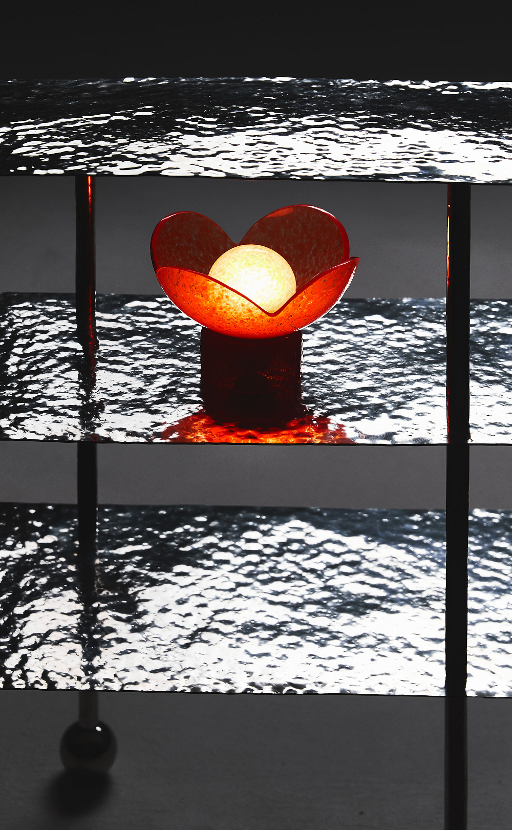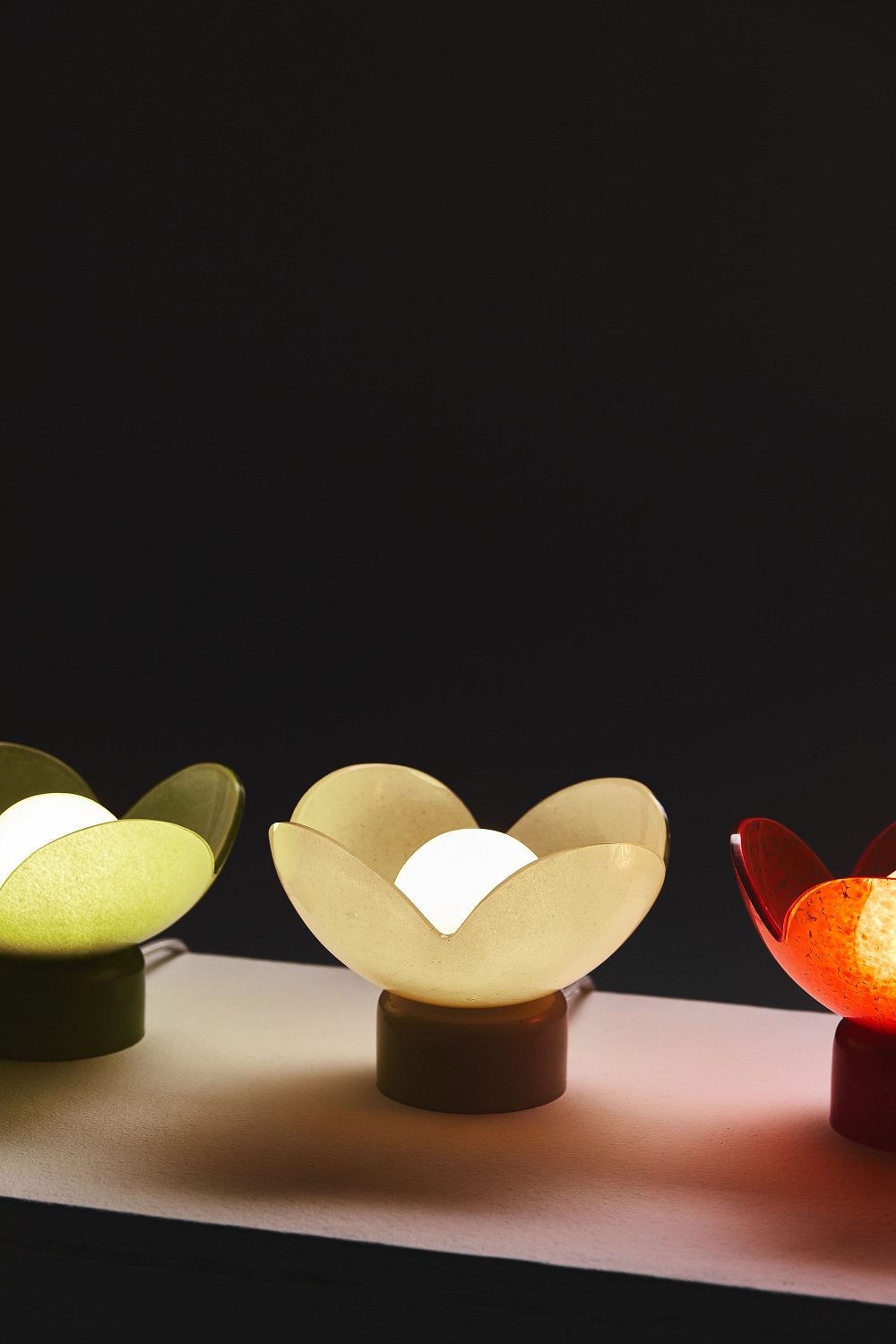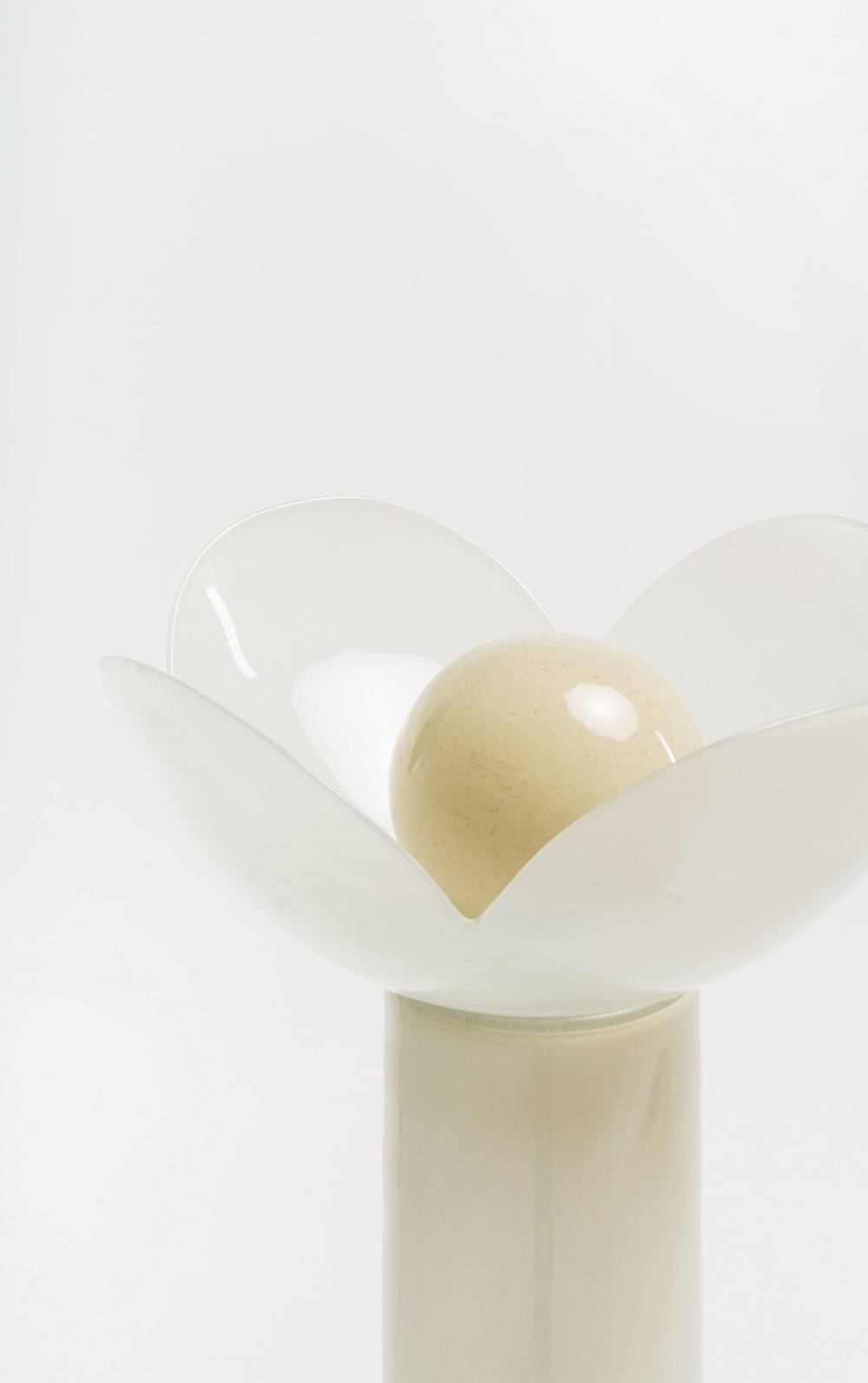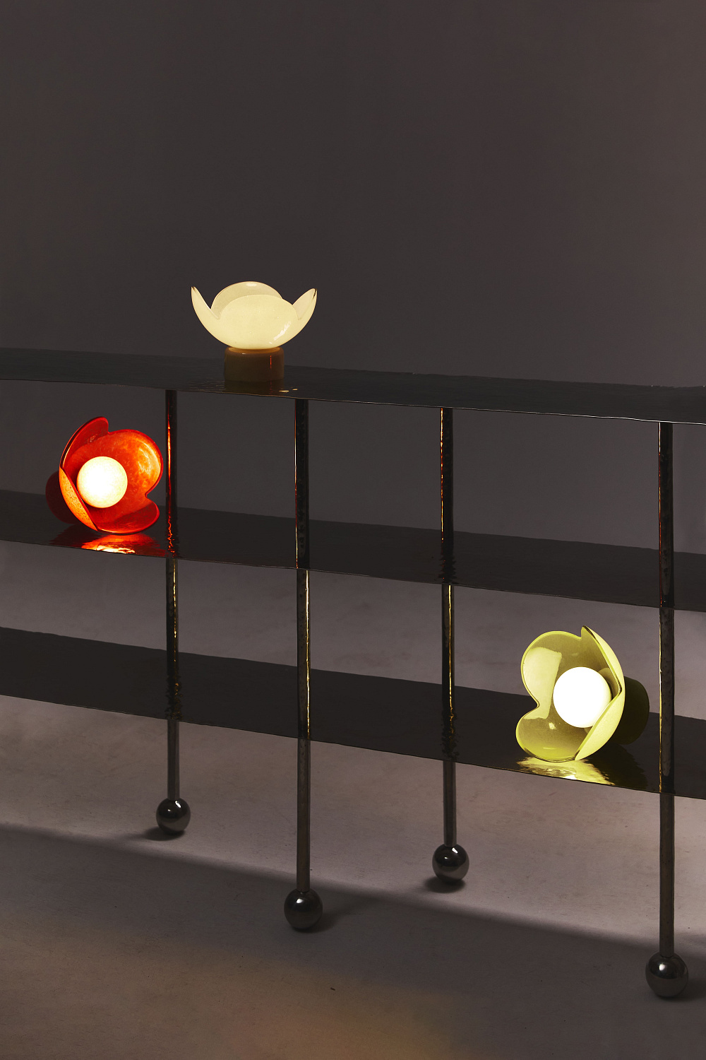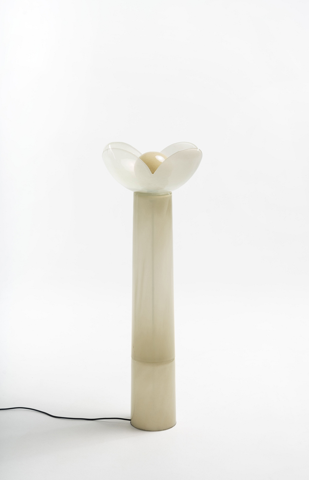 У виробах цієї колекції Анна та Сергій прагнули поєднати непідвладний часу комфорт природи, її елегантність і простоту, разом із життєвою силою та пристрастю у об’єктах, що водночас є масивними та легкими. Колекція складається з серії скляних ламп — Table Akebia, Wall Akebia, та Floor Akebia, — кожна з яких представлена у двох різних розмірах. Лампи доступні у п’яти кольорах — білому, зеленому, червоному, бежевому, та чорно-білому. Вони як підійдуть для світлих монохромних інтер’єрів, так і пасуватимуть до просторів, що потребуть яскравого акценту. Світильники виготовлені в Україні львівськими майстрами в техніці художнього лиття зі скла, що робить кожну квітку унікальною.
