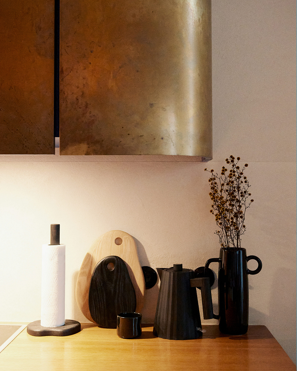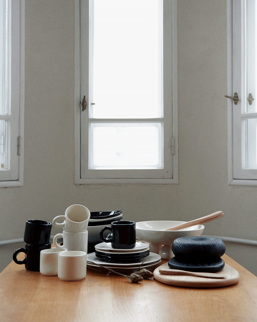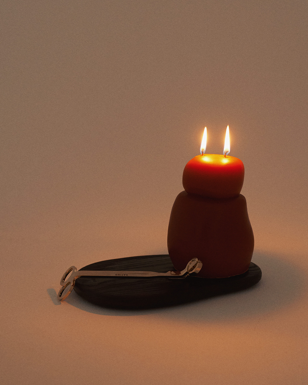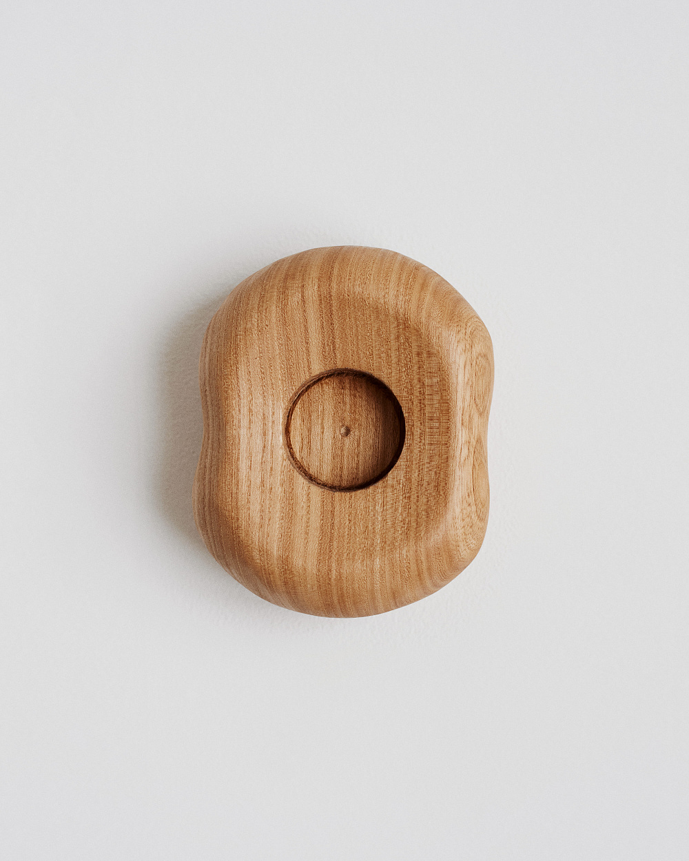 Стриману палітру дропу доповнив насичений червоний колір, притаманний паризькій студії митця. Над плавними фігурами з напівпорцеляни та цільної деревини працювали локальні майстри столярної справи. Об’єкти — свічки, кераміка, кухонне начиння й навіть палички дифузора — створювалися з підкресленою скульптурністю.