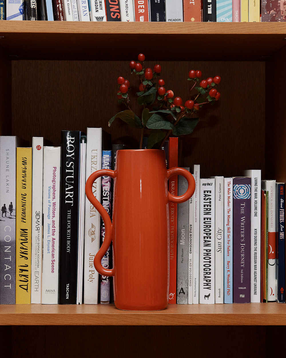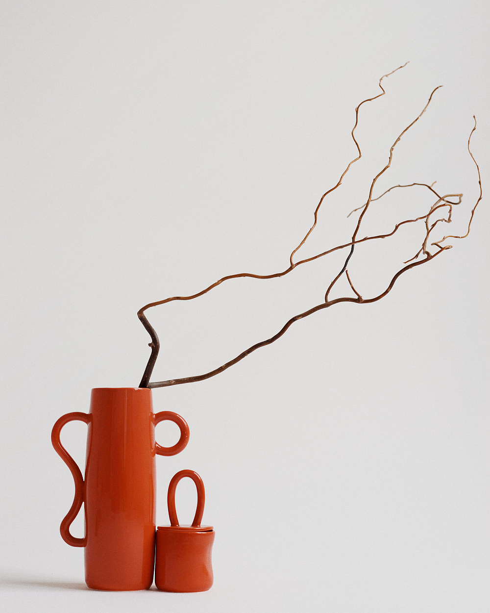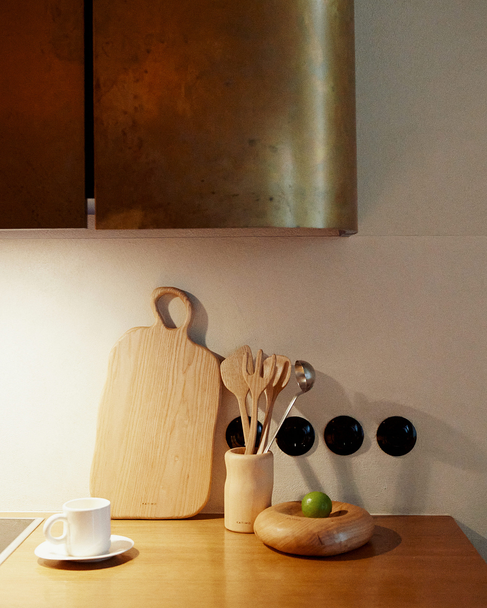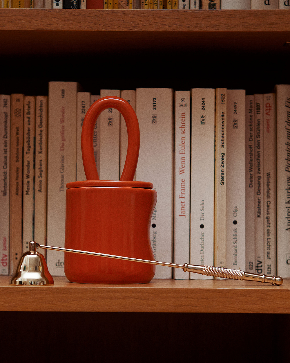 Стриману палітру дропу доповнив насичений червоний колір, притаманний паризькій студії митця. Над плавними фігурами з напівпорцеляни та цільної деревини працювали локальні майстри столярної справи. Об’єкти — свічки, кераміка, кухонне начиння й навіть палички дифузора — створювалися з підкресленою скульптурністю.