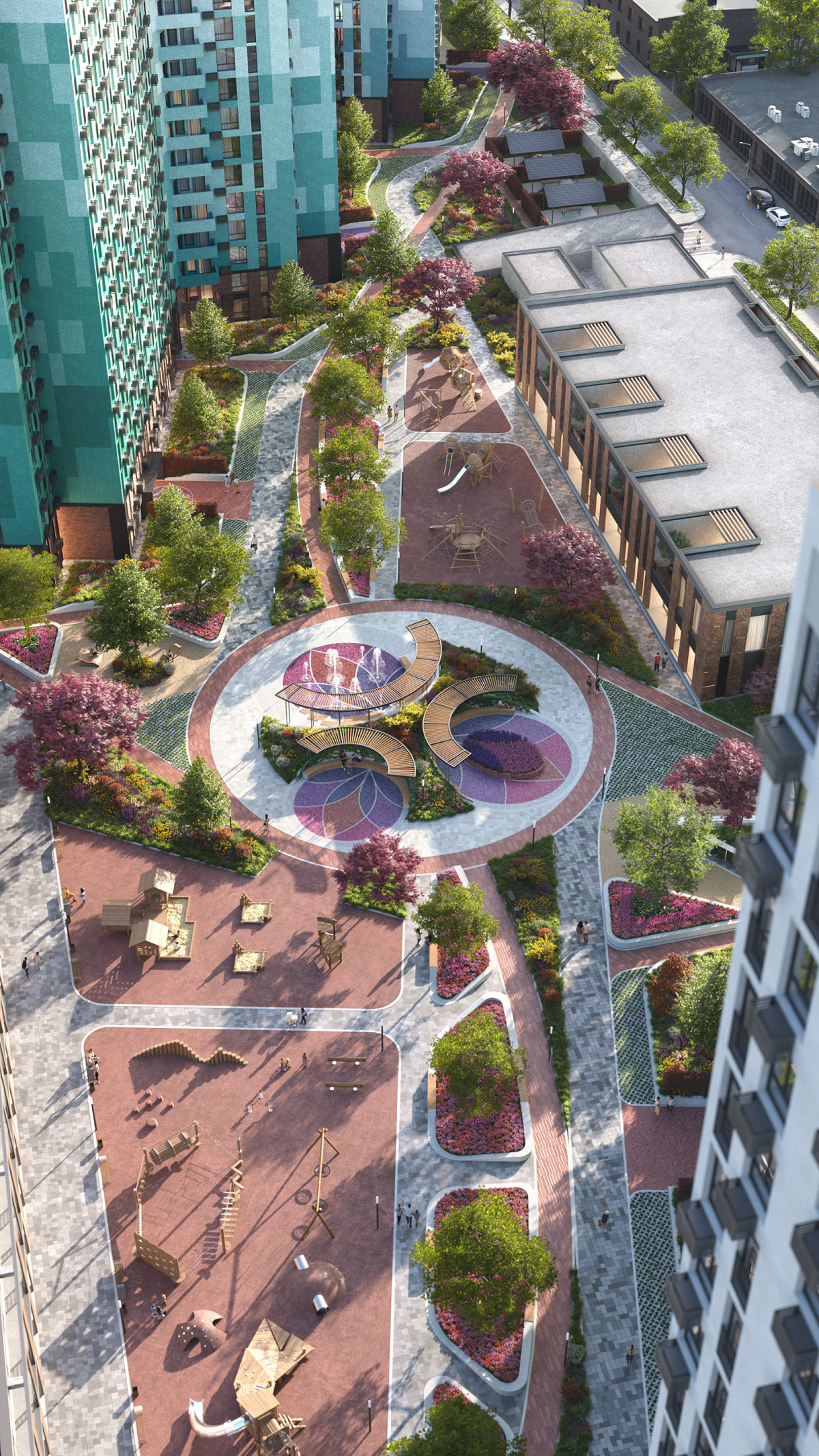 Концепція віталізації полягає в тому, що створене середовище бере на себе такі функції, як безпека, інфраструктура сервісів, освітні й культурні можливості, естетика, соціальна взаємодія та інші. В нашому баченні середовище задумане як простір для реального життя. Тут різні варіанти не конкурують між собою: активне дозвілля, спокійний відпочинок, прогулянки, йога, концентрація чи просто бажання побути наодинці. Тобто людина відчуває не просто наявність благоустрою, а зміну свого щоденного сценарію: вона менше втомлюється від оточення, більше часу залишає для себе й отримує простір, який не обмежує, а наповнює.