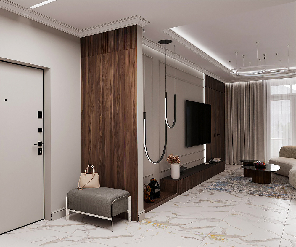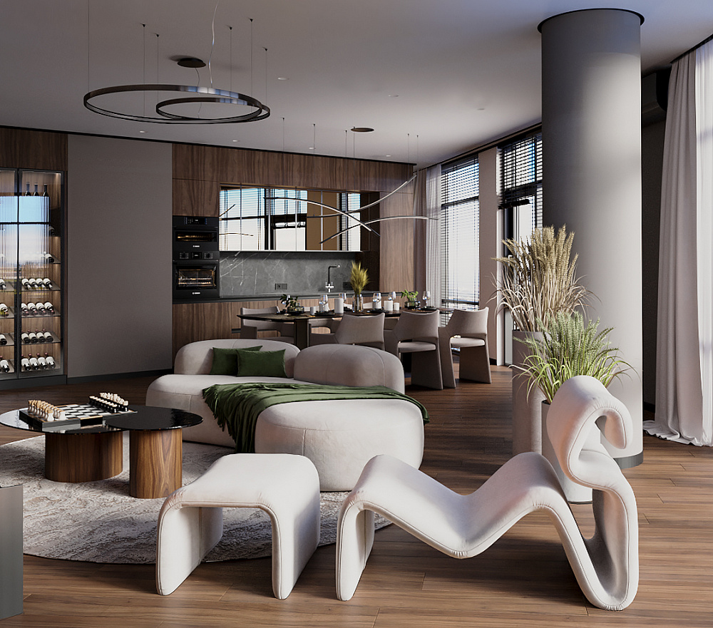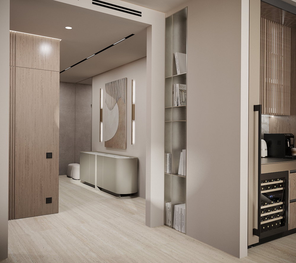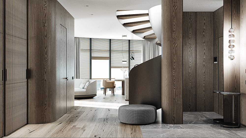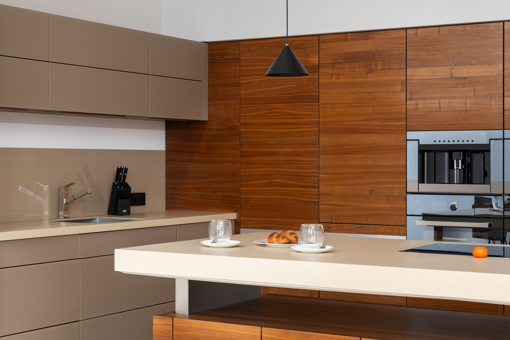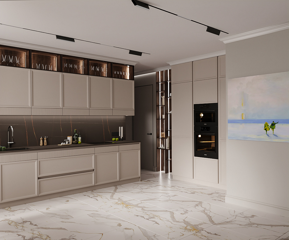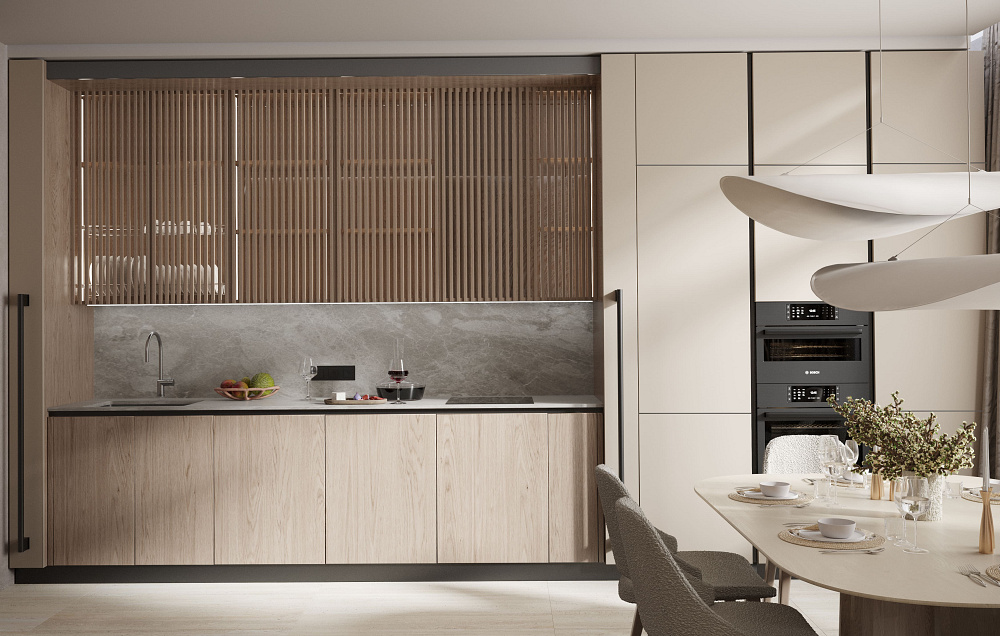 Тиха розкіш — це відсутність візуального шуму та захаращеності. Простір виглядає дорожчим, коли більшість його площі залишається вільною. Своєю чергою, від цього виграють і предмети. Чим більше «повітря» їх оточує, тим виразніше вони позначають власну візуальну цінність. Тому надзвичайно важливими є продумані системи зберігання в гардеробній чи на кухні — з якісною фурнітурою та ретельним ергономічним плануванням, що враховує зріст клієнтів та їхні звички. Тоді ви зможете швидко прибрати будь-який безлад. А лад в оселі дорівнює ладу в думках.