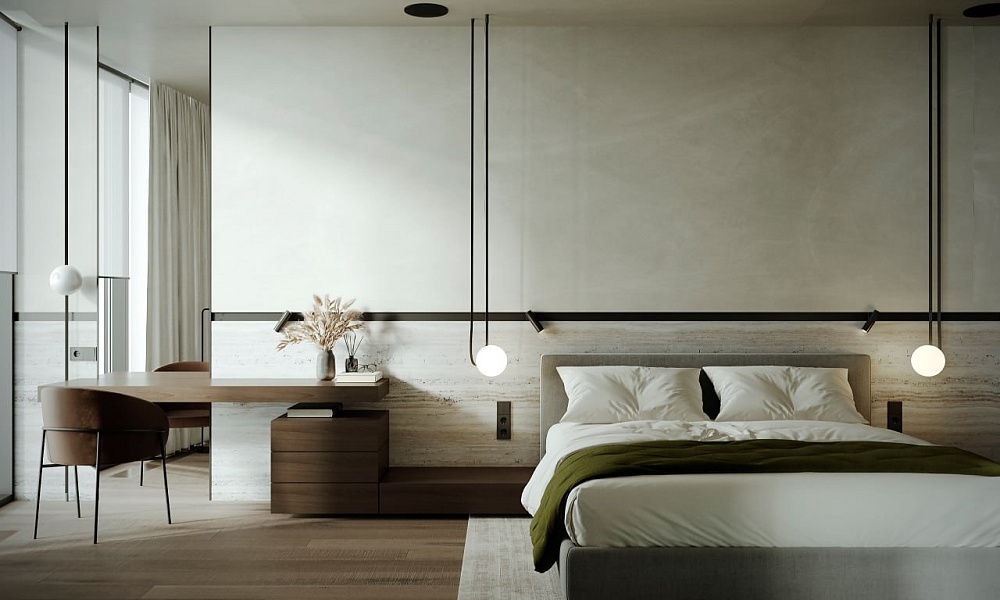 Тактильність — важлива складова естетики тихої розкоші, адже від неї напряму залежить наше відчуття комфорту, захищеності. Всі елементи меблів та оздоблення, яких ми торкаємося оголеним тілом, обовʼязково мають бути виконані з натуральних матеріалів, викликати приємні відчуття на дотик і не провокувати подразнень. Льон, шовк, мʼяка вовна — ваш вибір. До того ж натуральний текстиль підкреслить натуральні матеріали в оздобленні інтерʼєру, створить відчуття багатошаровості, насиченості.