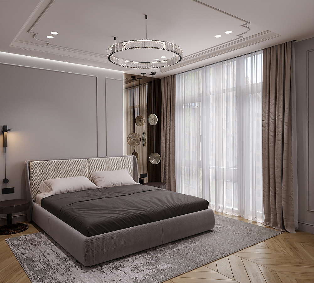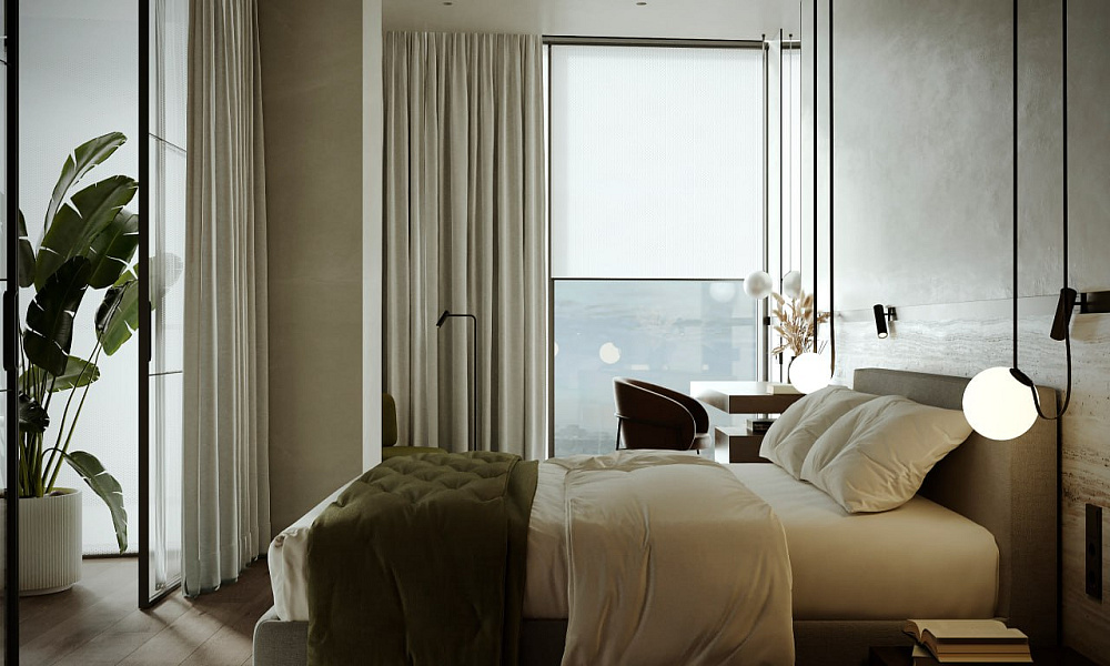 Можете вважати це моєю особистою примхою, але я переконана, що спальня має стати місцем повного розслаблення та усамітнення. Тому тут просто нема місця телевізору. Навіть проєктор для фільмів я б рекомендувала розмістити у вітальні. Забути про новини, про соцмережі, про плани та графіки й хоча б на короткий час дозволити собі належати лише самому собі — це і є справжня розкіш сьогодення, чи не так?