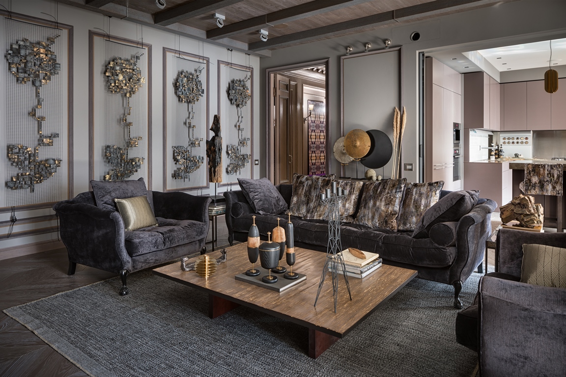 Работая над этой задачей, Александрина Лукач вдохновлялась образом европейских концептуальных галерей и хотела создать современное пространство, в котором все — от предметов мелкой мебели и текстиля до многочисленных аксессуаров и скульптуры – наполнит интерьер новыми смыслами.