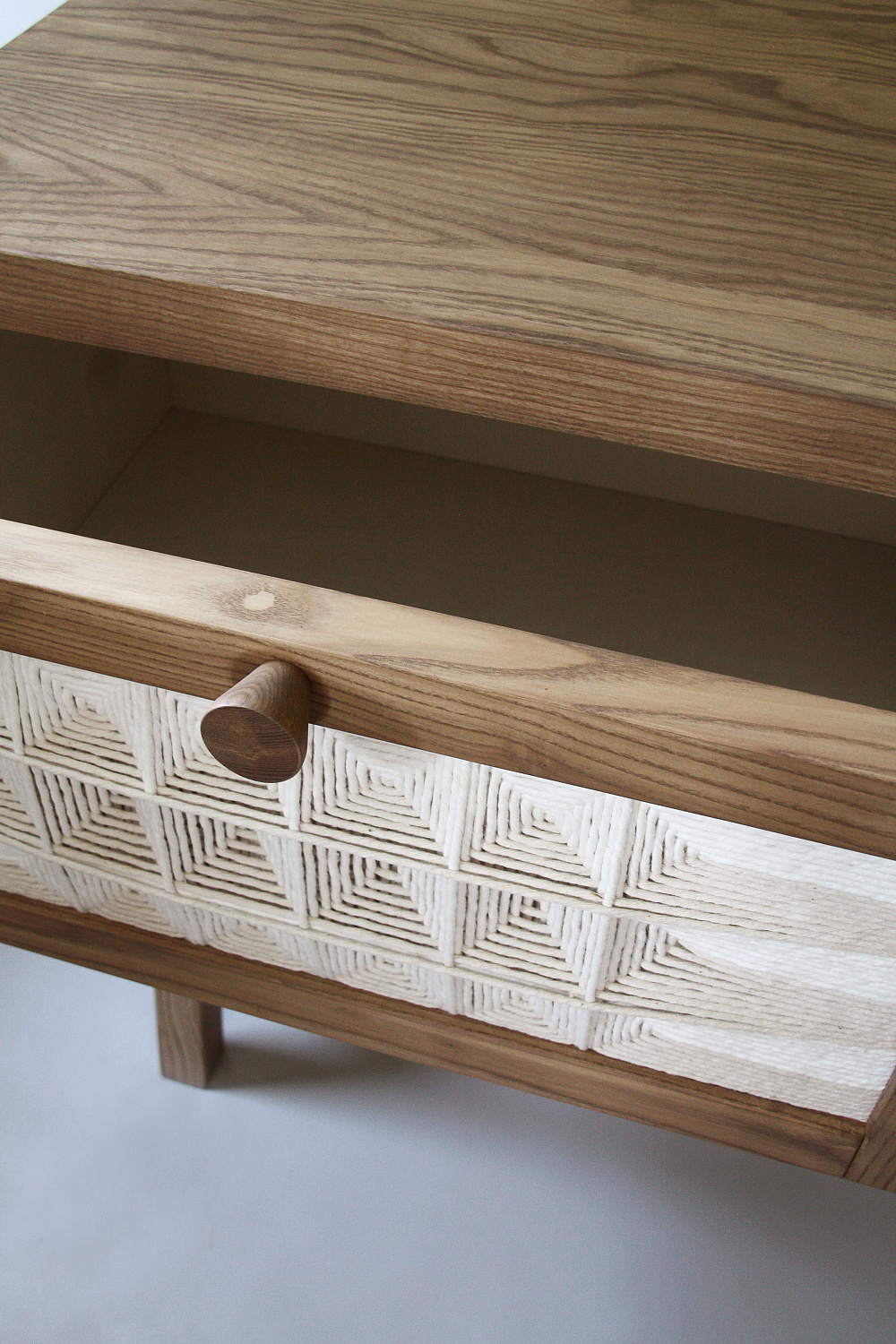Комод Hora — результат колаборації із художницею Іриною Балбек, яка працює в жанрі текстильного арту. Плетені дверцята додають конструкції легкості та ошатності.