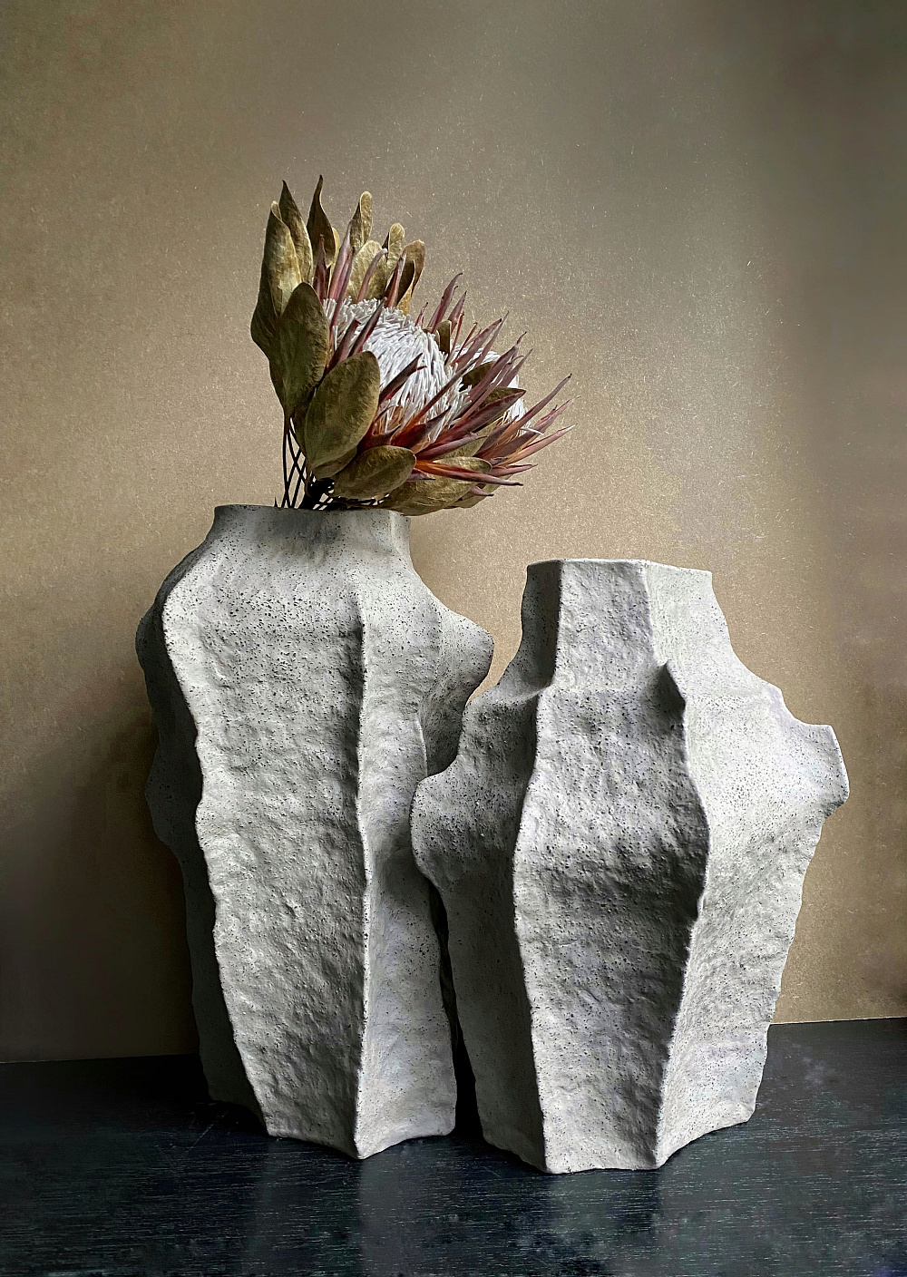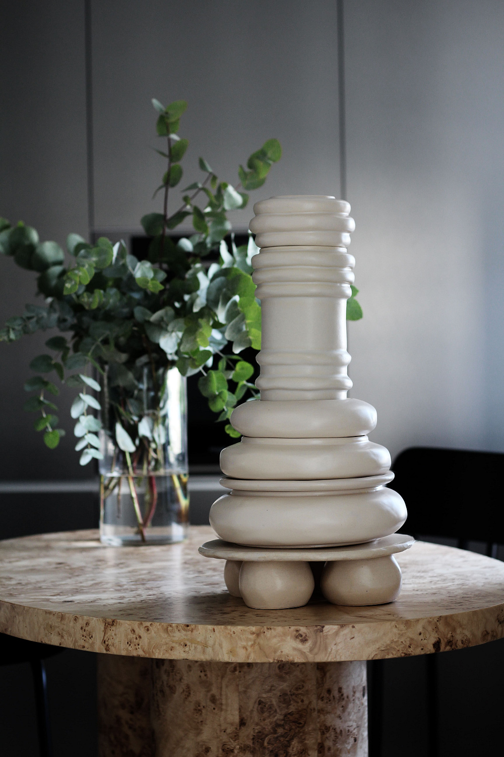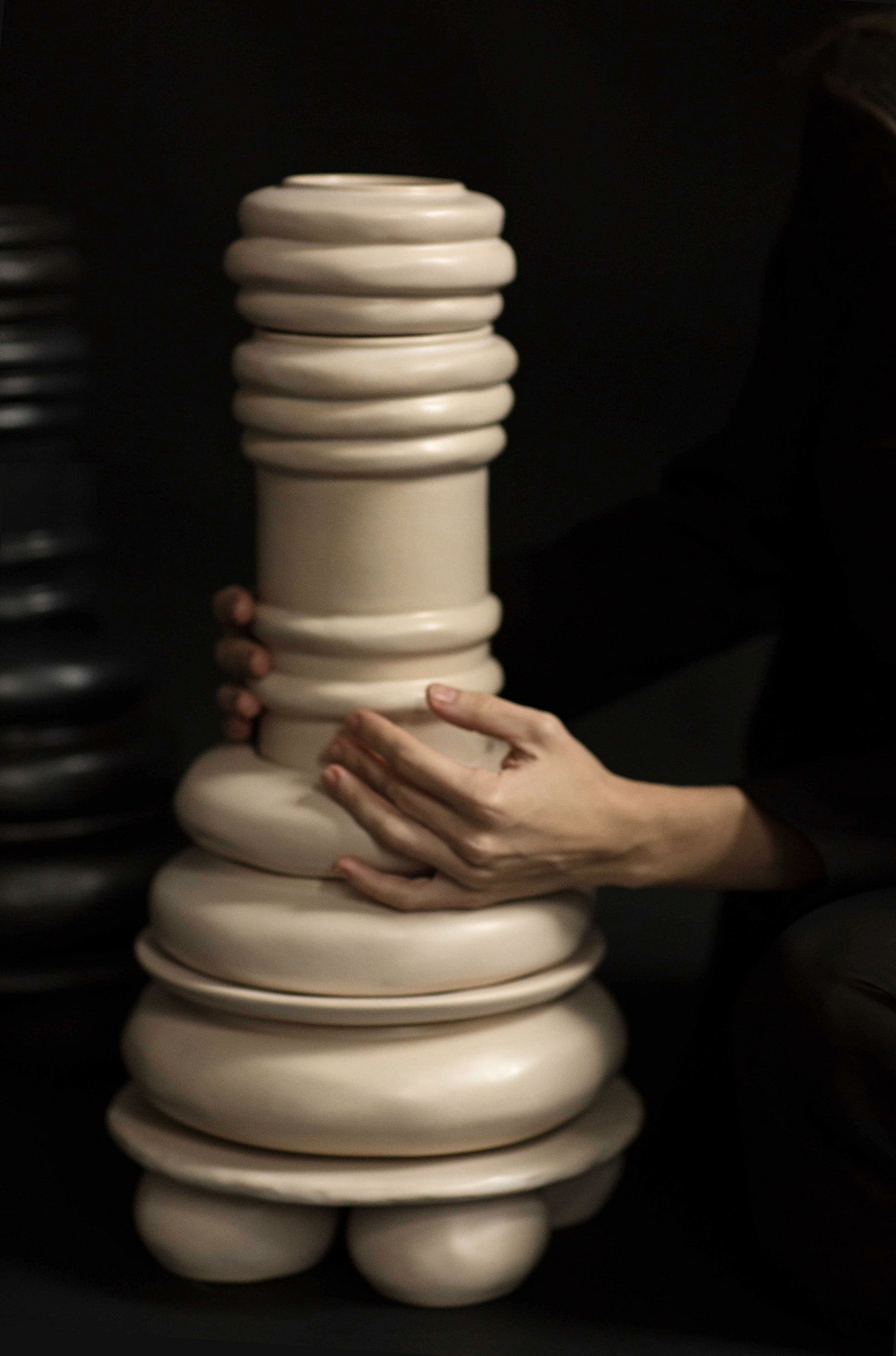 Набір керамічних горщиків, ваз та тарілок з колекції Rozmova зроблено таким чином, щоб окремі предмети стикувалися один з одним та утворювали єдину скульптурну композицію, яка в свою чергу може стати елементом декору оселі.