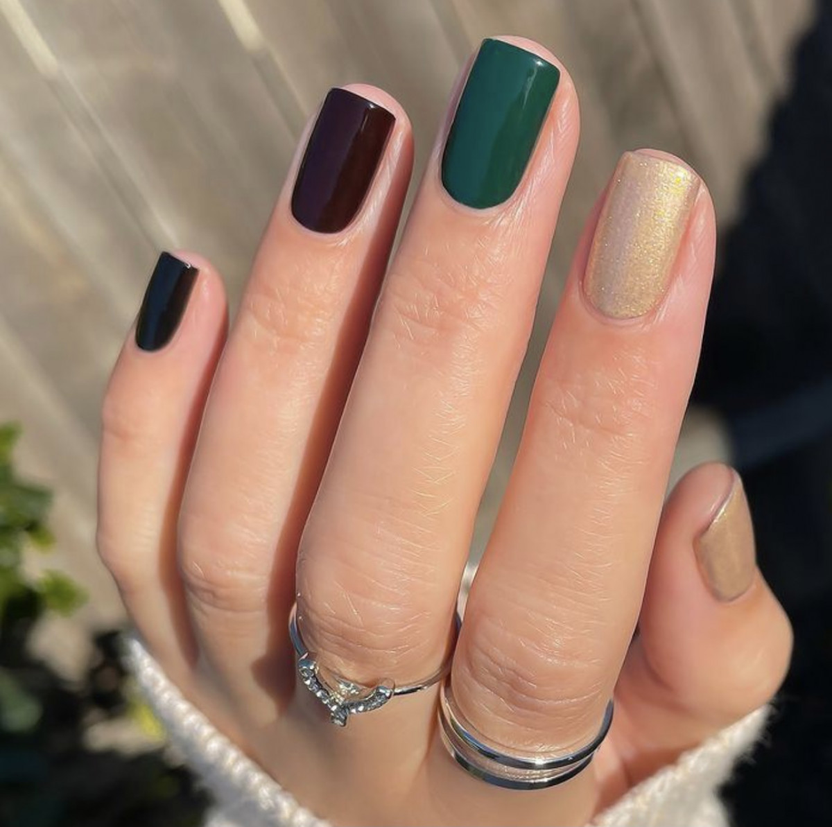 В зимнем маникюре 2022 найдутся тренды на любой вкус. Основатель и креативный директор сети MVK, селебрити нейл артист, бренд амбассадор украинского представительства OPIЗ Виктория Колодий предлагает попробовать и однотонное покрытие, выполненное в темных глубоких оттенках, и голые ногти или нюд, и скромную моду с использованием минималистичных элементов в нейл арте, и глиттер, и bling bling nails, и нескучную классику — черный, белый, красный, мини френч, абстракцию, и очень модный синий маникюр.
