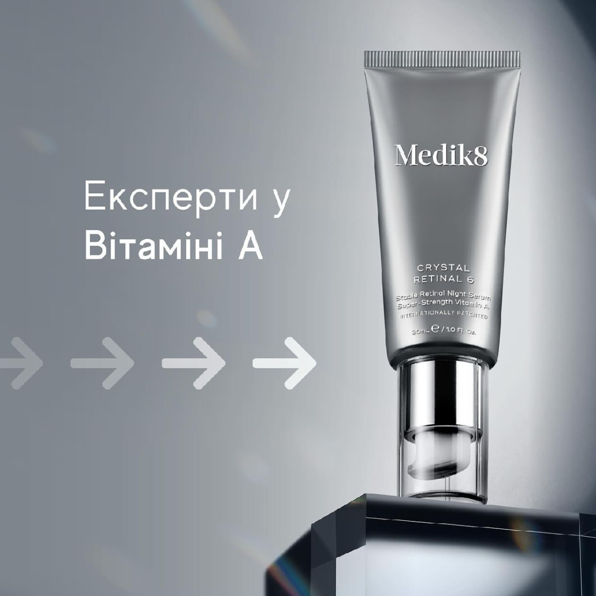 Crystal Retinal 24 — це вершина унікальної лінійки Crystal Retinal від Medik8 для досвідчених користувачів вітаміну А, які шукають найвищу концентрацію ретинальдегіду та антивіковий wow-ефект.