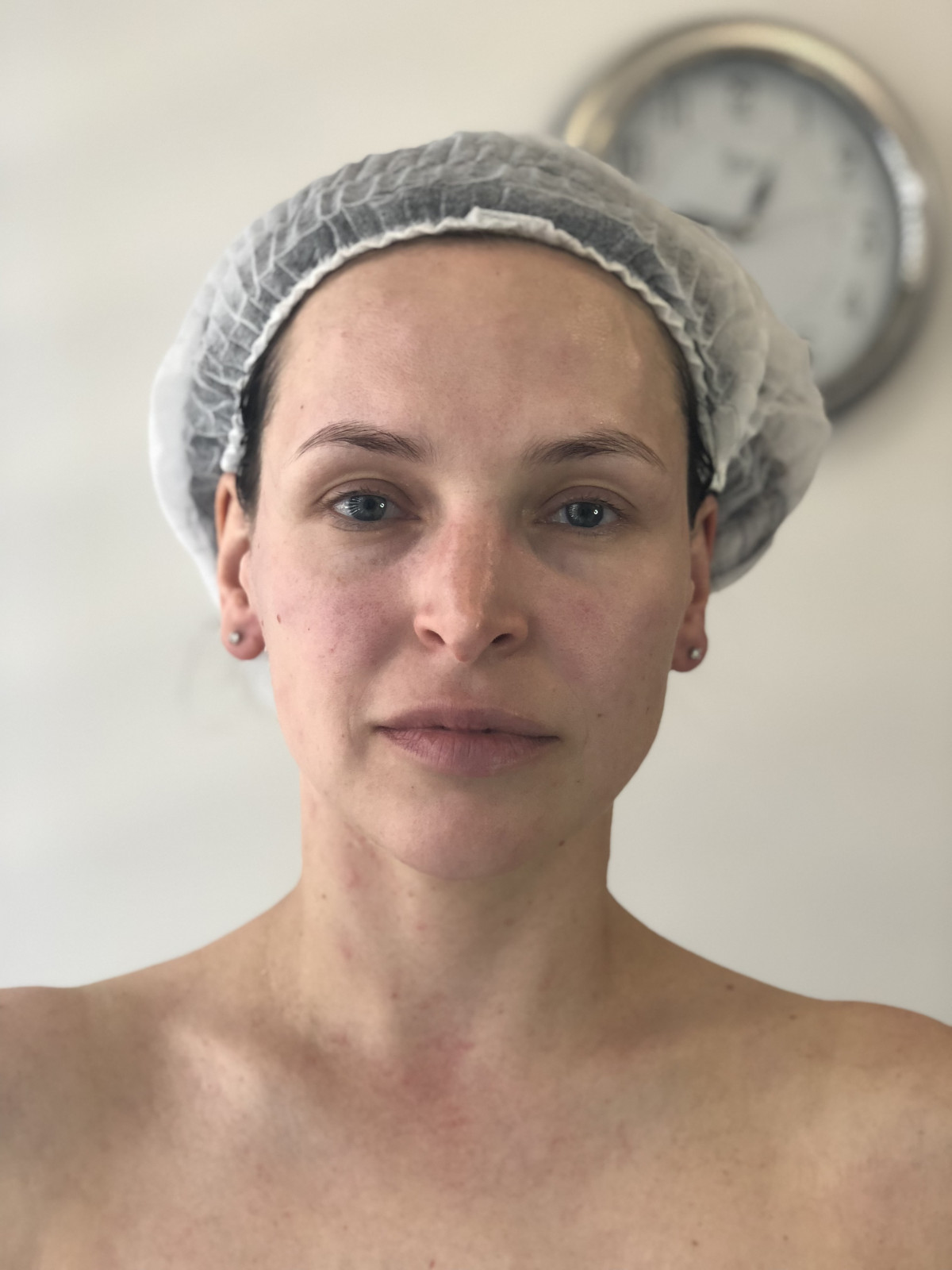 После завершающего этапа процедур, визажист и специалист по декоративной косметике DMKC Елена Ёлкина нанесла мне на кожу, так называемый, «медицинский камуфляж». Эффект был просто потрясающий. DMKC имеет высокую концентрацию пигмента для наилучшего покрытия и безупречного вида кожи. К слову, DMKC активно используется визажистами в Голливуде. Медицинская косметика идеально подходит для нанесения, как после процедур, так и для использования в повседневной жизни.
