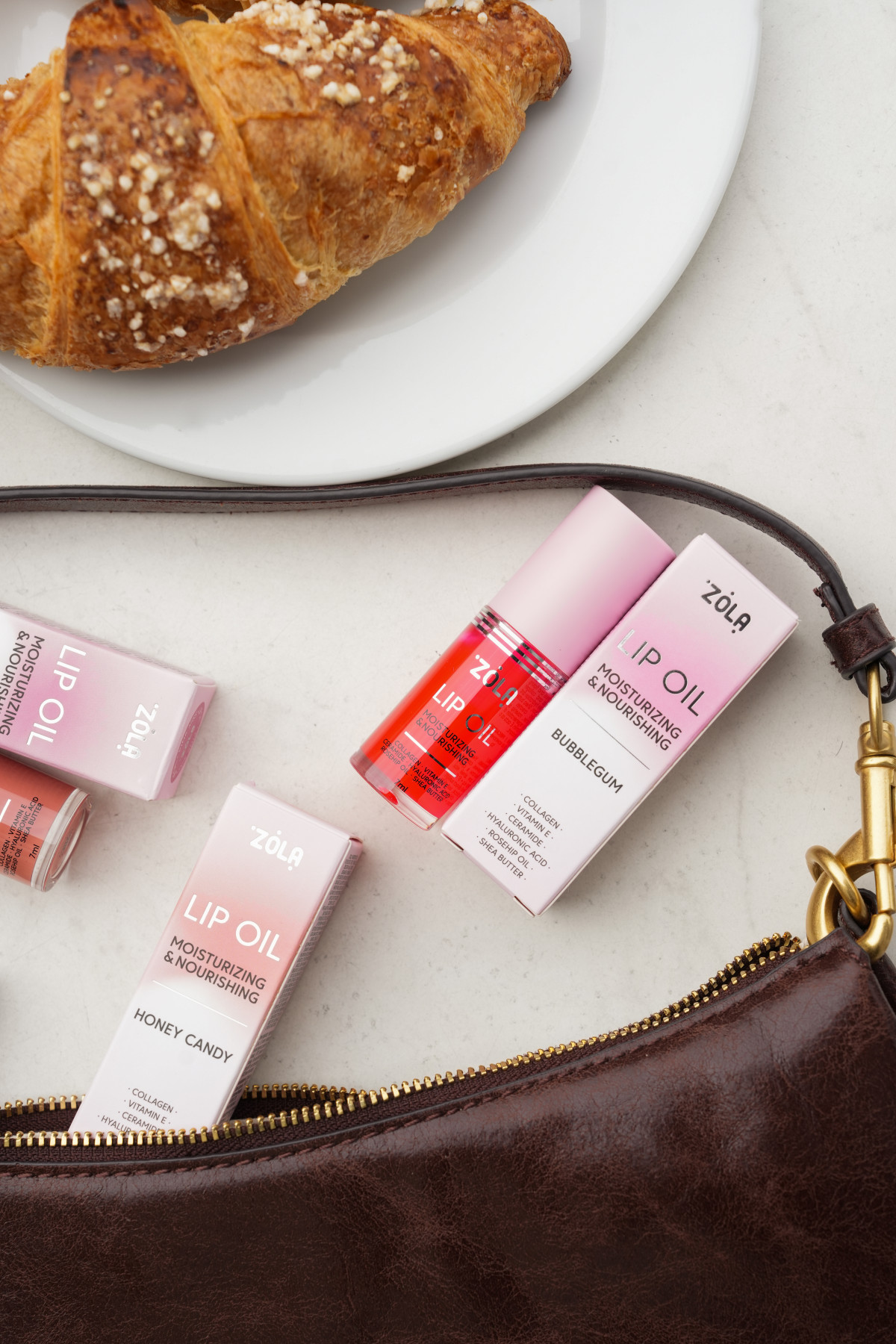 ZOLA Lip Oil представлена в чотирьох відтінках: романтичному Watermelon Sorbet, грайливому Pink Kiss, делікатному Bubblegum та медово-карамельному Honey Candy. Їхній спільний знаменник — природність. Відтінки не перевантажують, не маскують, а лише підкреслюють натуральну красу й індивідуальність.