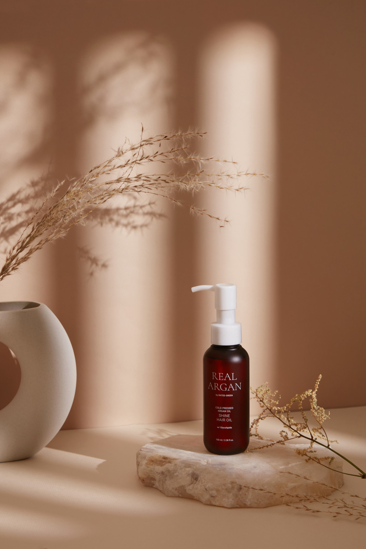 Засіб Rated Green Real Argan Shine Hair Oil містить органічну арганову олію холодного віджиму та поверхнево-активні гліколіпіди — цей дует направлений на відновлення пошкодженого волосся. Засіб не містить силіконів та ефективно пом’якшує тьмяне та сухе волосся, відновлює та зволожує посічені кінчики, не обтяжуючи їх. Достатньо всього лише декілька крапель, щоб волосся набуло неперевершеного блиску.