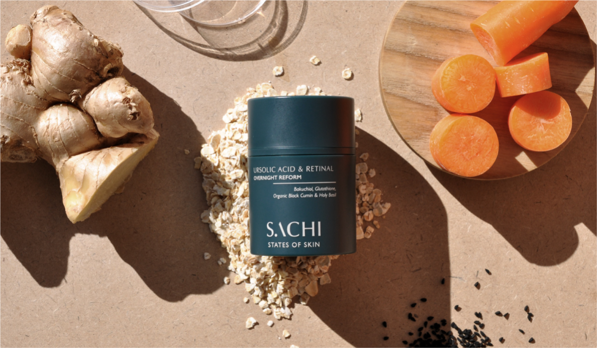 Революційний нічний гель-крем Sachi Skin Ursolic Acid & Retinal Serum розроблений для помітної трансформації та помітного оновлення шкіри усього лише за одну ніч. Він може похвалитися потужною формулою з інкапсульованим ретинальдегідом, ліпосомною урсоловою кислотою, відновлювальним трипептидом, а також аюрведичними екстрактами бакучіолу, олією насіння чорного кмину та базиліка, 12 потужними антиоксидантами для освітлення, відновлення та регенерації без подразнення.