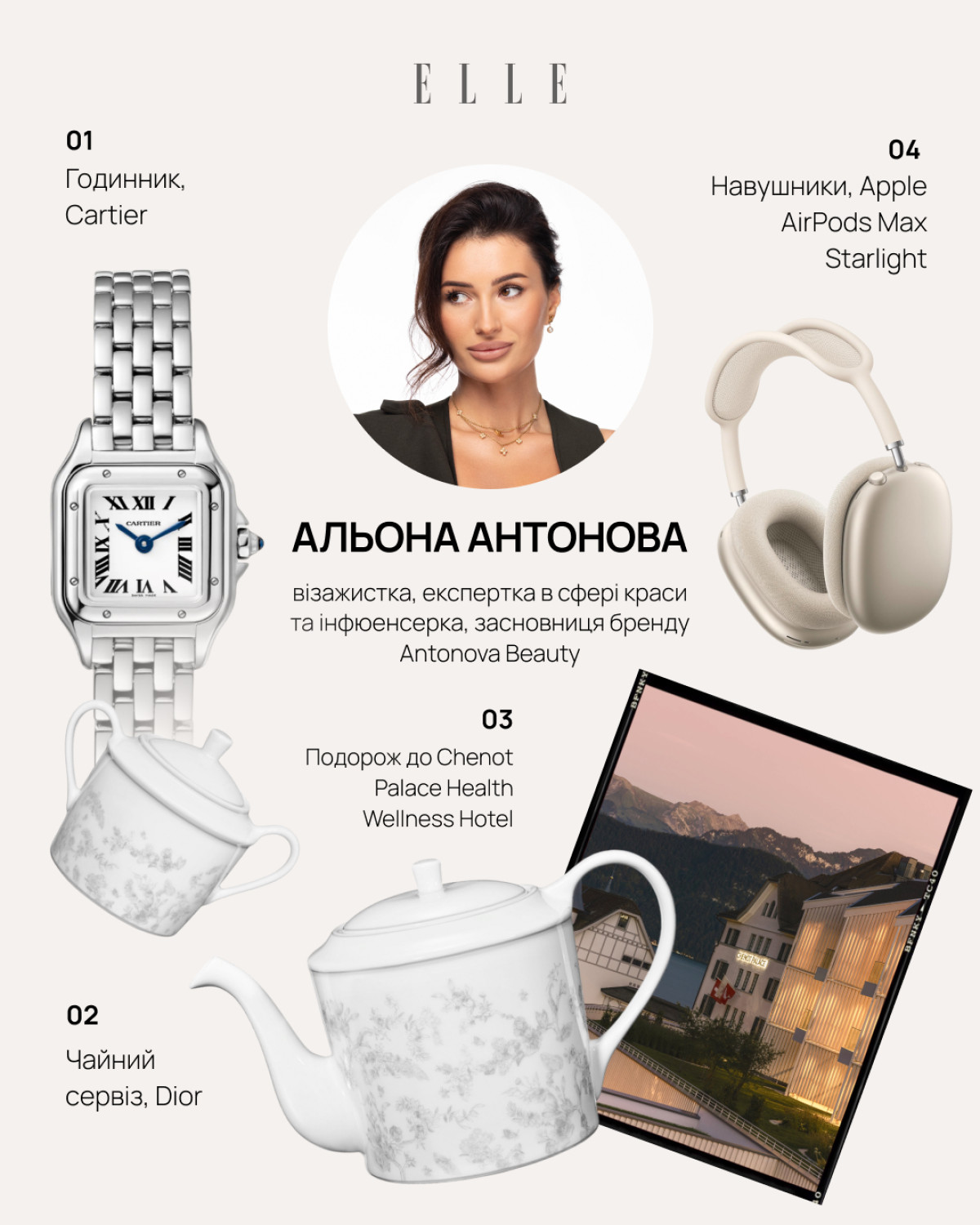 2. Чайний сервіс від Dior — не так давно я переїхала, і колекціонування красивих чашок стало окремим задоволенням. Для мене важлива естетика в усьому, навіть у тому, з якого кухля ми п`ємо чай або каву. Це надихає і заряджає енергією.