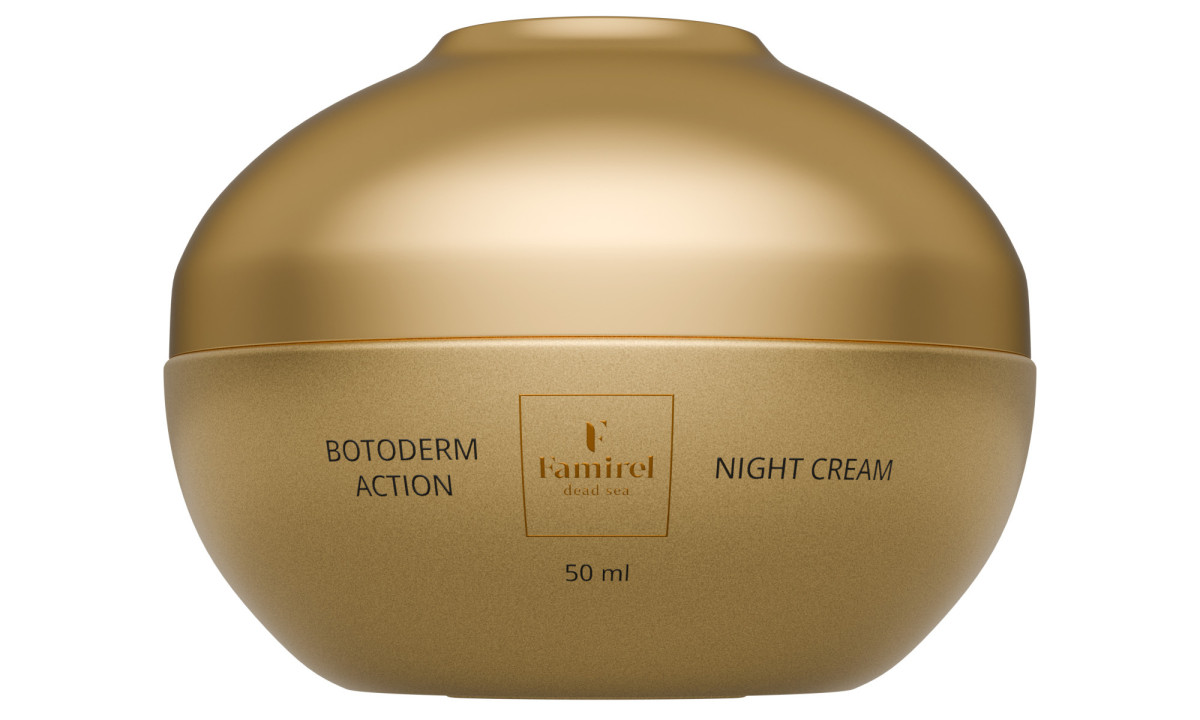 Талановиті експерти бренду Famirel створили справжній beauty-коктейль, який працює над приголомшливим ефектом омолодження на шкірі обличчя та шиї, поки ви спите. Для цього використовуються екстракти огірка й алое, вітаміни В5, С, Е, які живлять шкіру і насичують її антиоксидантами, відновлюючи пошкоджені клітини, олії авокадо, соєвих бобів, оливи, жожоба, соняшника, ретинол (вітамін А), гліцерин, стеаринова кислота, які сприяють регенерації, зволожують, пом`якшують, надають пружності, підтягнутого вигляду та вирівнюють колір шкіри. Зірковий компонент бренду — сіль Мертвого моря — насичує клітини мікроелементами та мінералами.