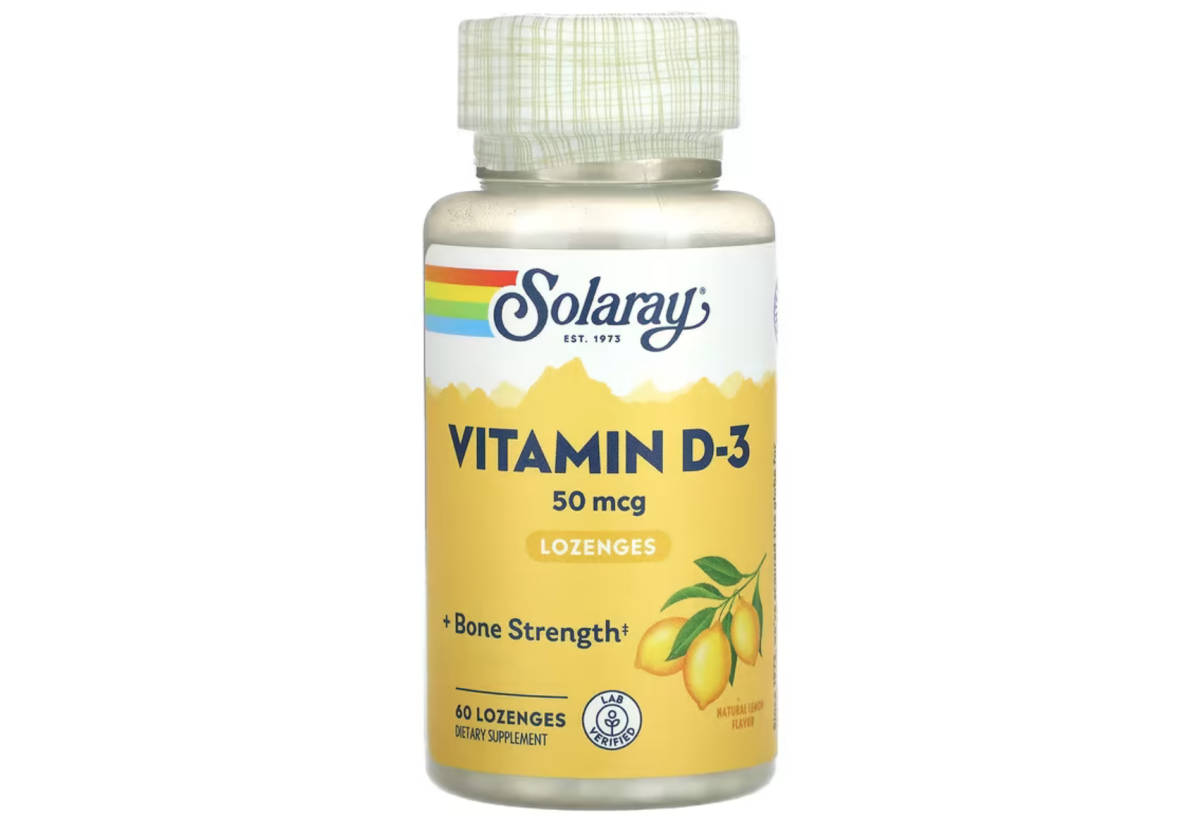 Solaray, вітамін D3, 50 мкг (2000 МО), 60 пастилок зі смаком лимона