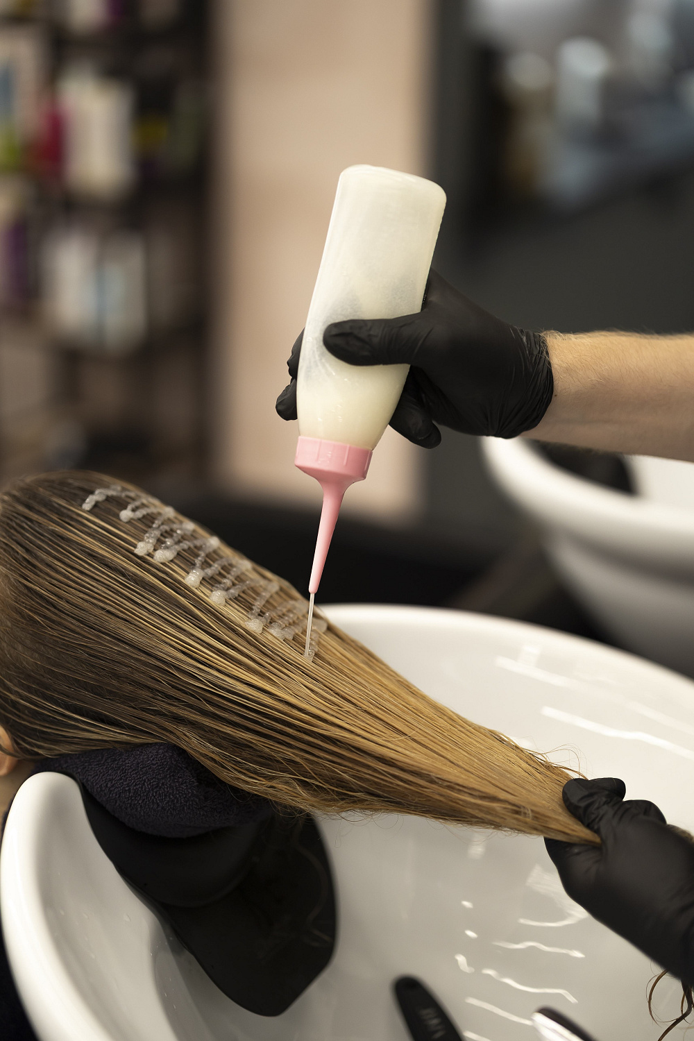 1. Тонування відтінками Redken ShadesEQ Bonder Inside — фарби з ефектом кондиціонера, яка має у складі захисний Bonder-комплекс для насиченого, багатовимірного кольору та сяйнистого волосся;