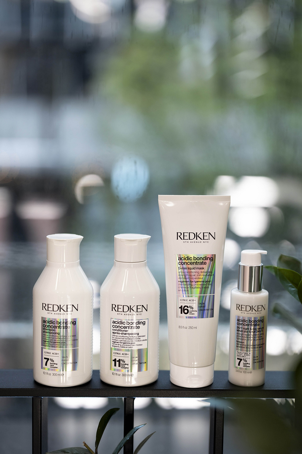 Redken Acidic Bonding Concentrate — бестселер бренду з лимонною кислотою та концентрованим комплексом для відновлення міжкутикулярних зв`язків, що забезпечує максимальне відновлення, зміцнює ослаблені зв`язки, допомагаючи відновити пошкоджені локони та захистити їх від ламкості.