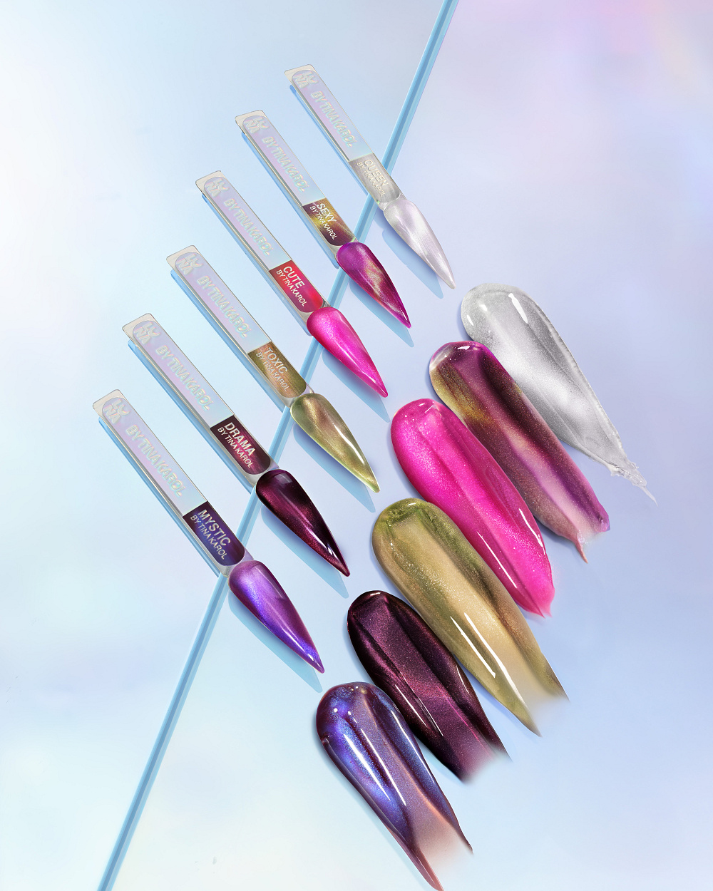 Кожен відтінок — це не просто колір, а образ, що комунікує настрій: Queen, Sexy, Cute, Mystic, Drama, Toxic. Ця палітра символізує шість ролей однієї жінки, що змінюються щодня. Спеціальні магнітні частинки в складі лаків створюють динамічний перелив, імітуючи ефект «котячого ока», надаючи глибини та гіпнотичності.