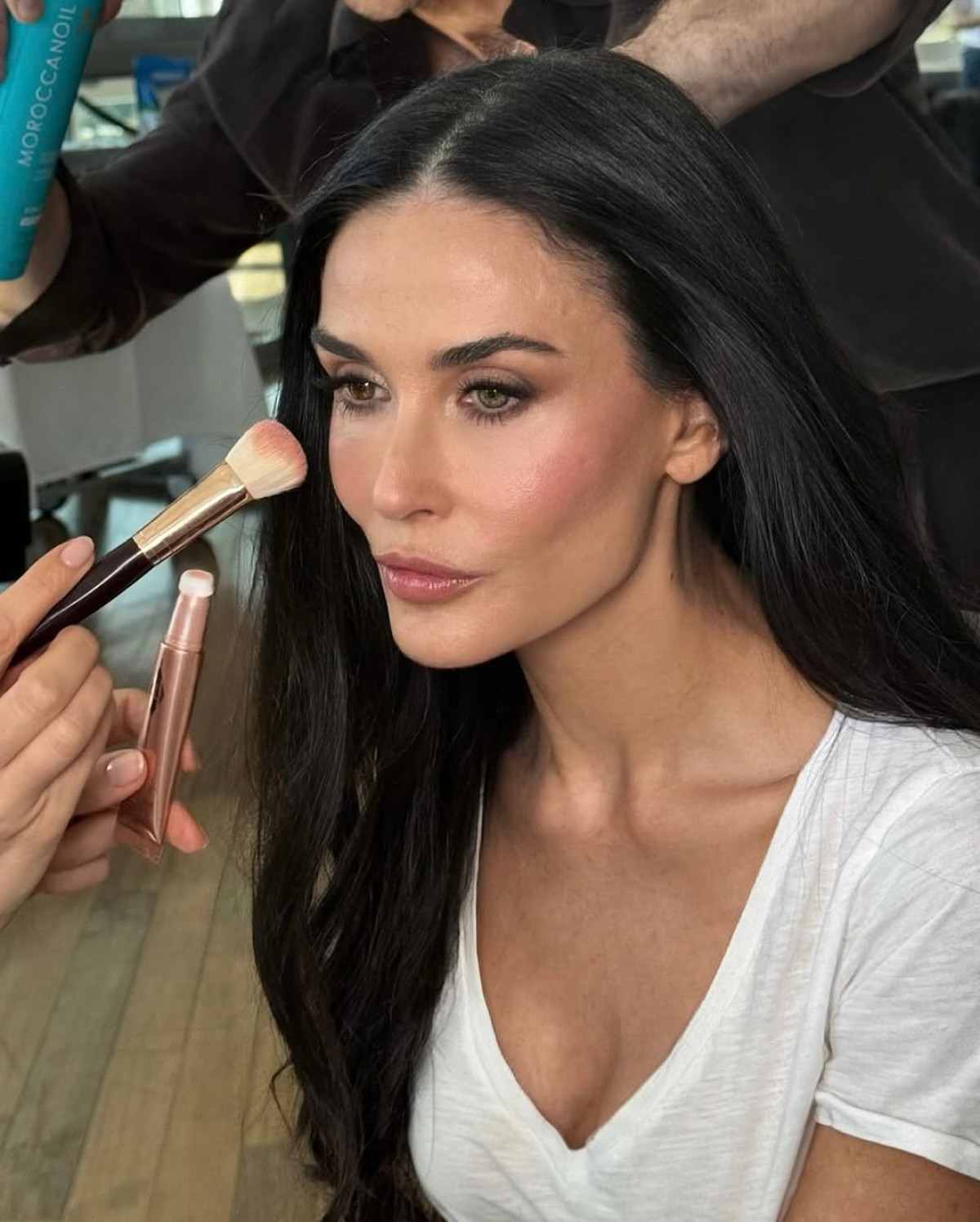 Правило друге: хайлайтер наносьте на верхівки вилиць, боки перенісся, зону під бровами і ямку над губою, рум`яна — на яблучка щік (для цього широко посміхніться і нанесіть їх на два місця, що при цьому найбільше виступають), пудру — на западинку під вилицями та по контуру обличчя. Причому, якщо ви хочете надати об`єму щокам, якого бракує, слід кілька разів провести пензлем уздовж лінії вилиць від яблучок щік у напрямку до скронь.