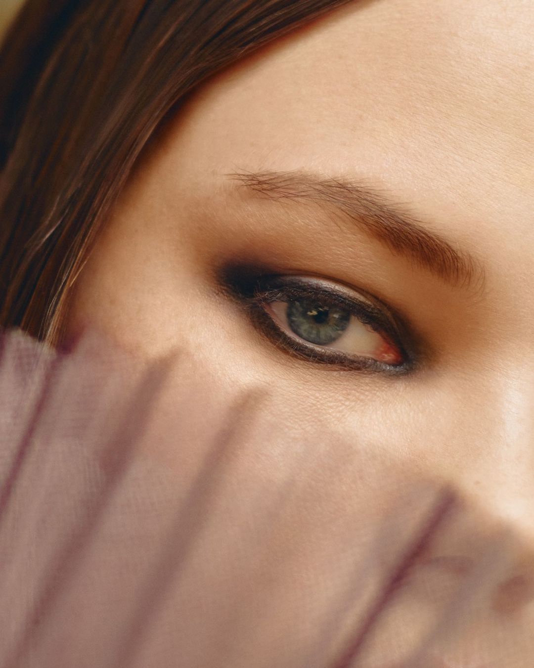 «Я сделал акцент на глазах, создав вариант интенсивного дымчатого глаза, который стал ярче за счет растушевки теней. Я хотел, чтобы глаза были мрачными и поэтичными, гармонирующими с таинственной, сказочной атмосферой этой коллекции, так эффектно представленной в Версальском дворце», — объясняет Питер Филипс.