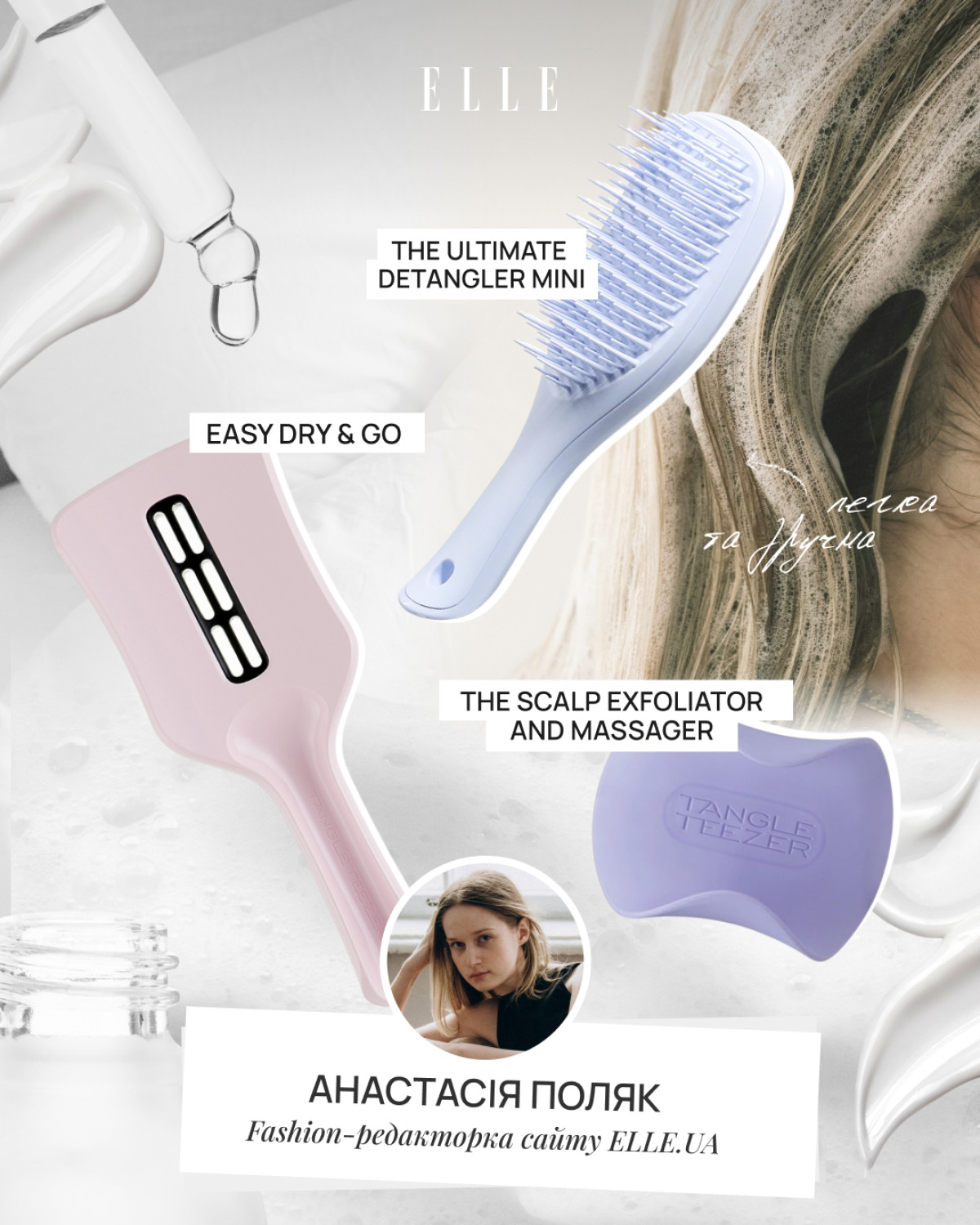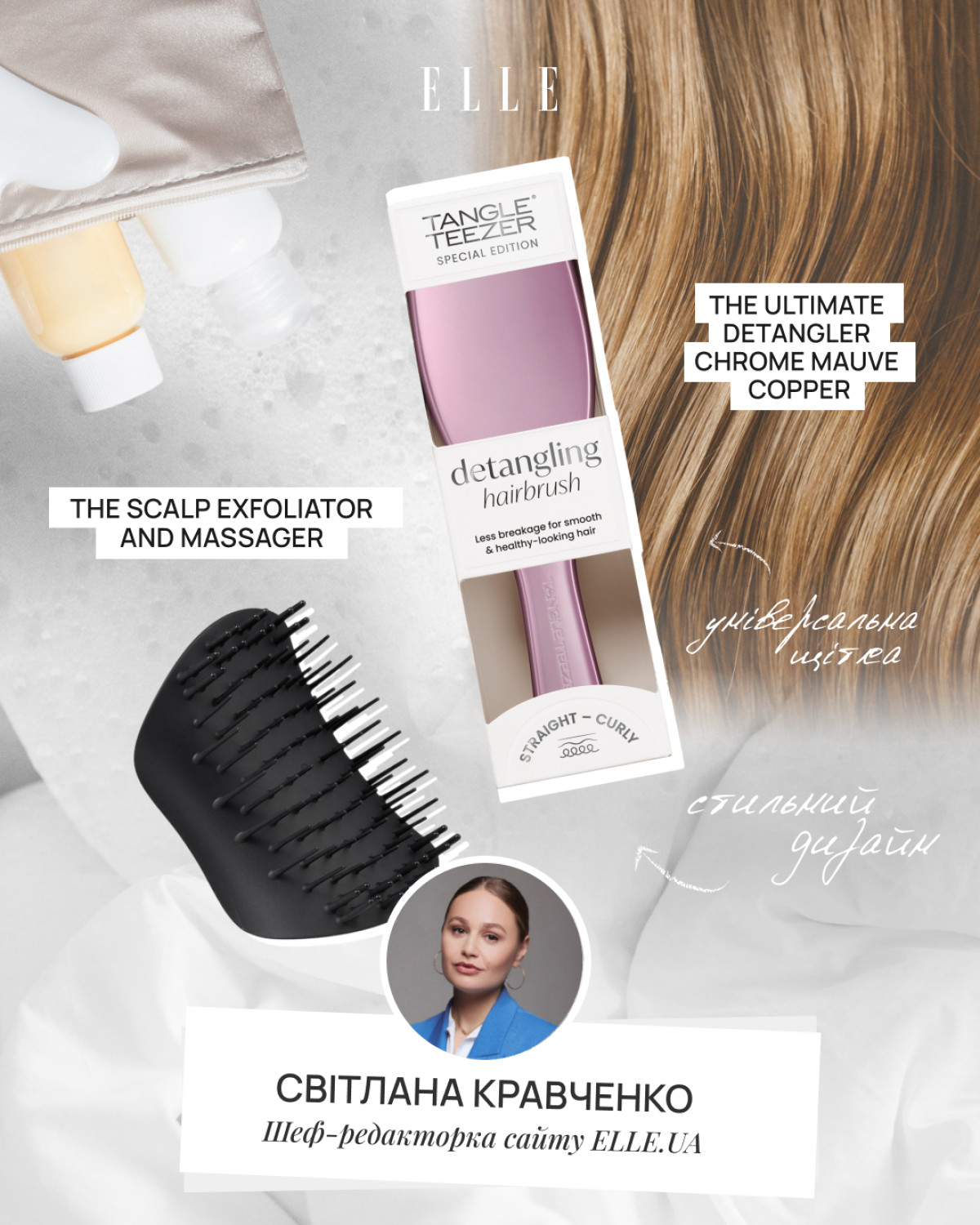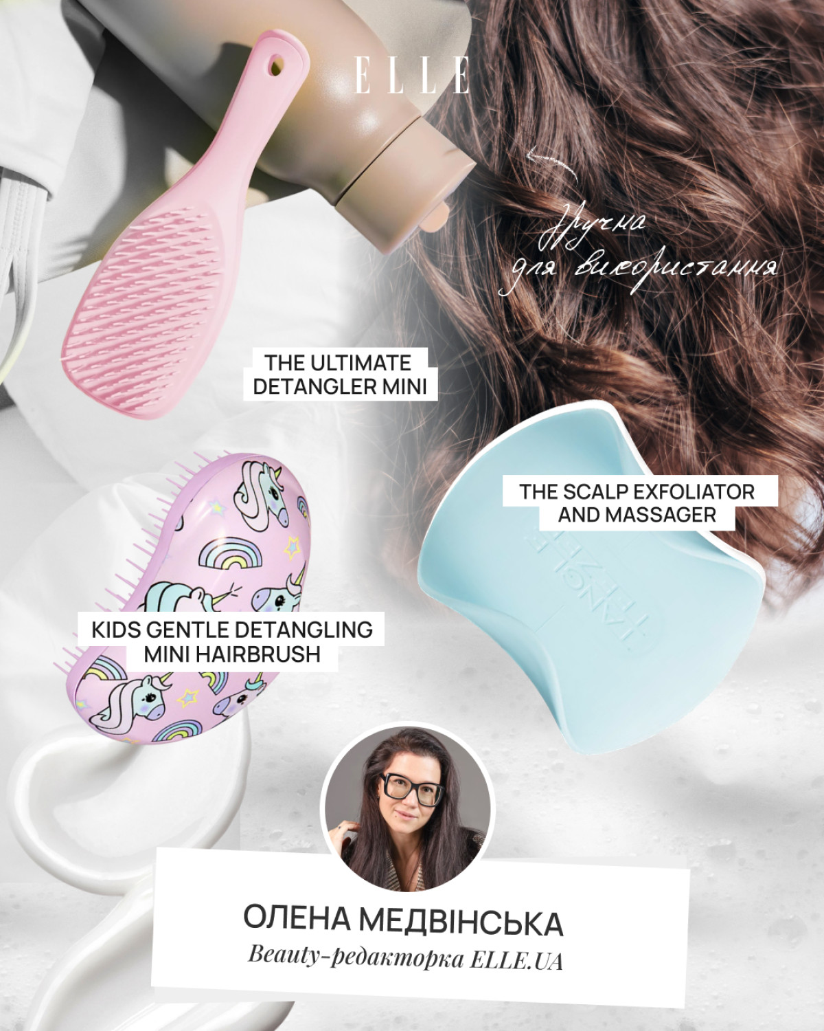 За багато років роботи в ELLE я вже й не пригадаю точно, коли саме познайомилась з Tangle Teezer, але добре памятаю ту емоцію: «О, це ті славнозвісні щітки, що розплутують будь-які вузлики». Минуло вже багато, дуже багато часу, проте моє перше враження не змінилося, а бренд лише підтвердив власний статус beauty-легенди. В моїй колекції навіть є дизайни, які більше не випускаються. Як зараз памʼятаю, першою в мене зʼявилась щітка для розплутування прядок в душі. На той момент вона була справді революційною, адже вважалося, що мокре волосся травмується сильніше і розчісувати його треба перед миттям. І хоча з того часу цю ідею підхопили й інші бренди, Tangle Teezer були першими й залишаються найкращими.