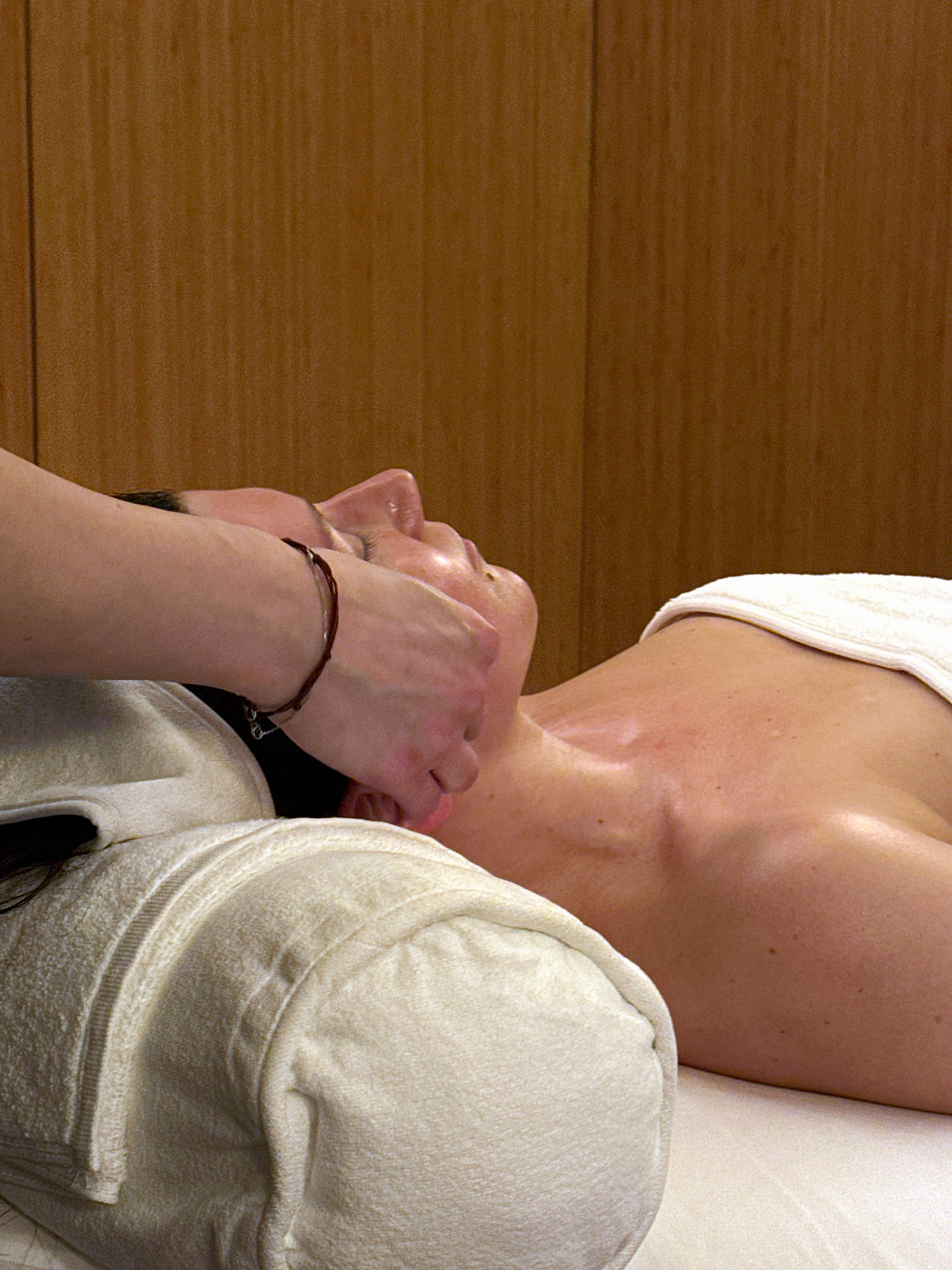 Поки на обличчі послідовно працюють бальзами, пілінги, тканинна маска та кремова маска з ананасом (відчуття таке, ніби я пірнула у стиглий ананас і сиджу всередині), в ході ритуалу використовуються техніки остеопатії та абхʼянгми для тіла. Під час цього легкого масажу, який дивовижним чином перетворює внутрішнє відчуття на блаженство, ніби само собою згадується золоте правило про те, що якість нашої шкіри та чіткість овалу обличчя нерозривно пов’язані з усіма органами та системами тіла. Це означає, що ефективна процедура для обличчя просто зобов`язана задіяти лімфатичні канали тіла та точки, які сприяють глибокій і повноцінній релаксації.