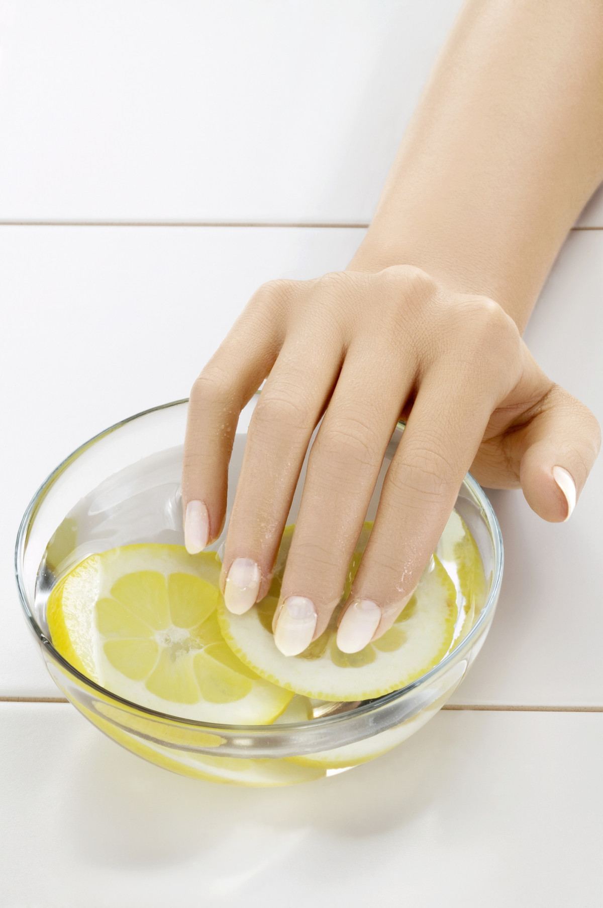 Розріжте невеликий лимон, встроміть нігті в його м`якоту і тримайте 5-10 хвилин, щоб вони наситилися лимонним соком, потім обполосніть руки водою і нанесіть на нігті живильний крем.