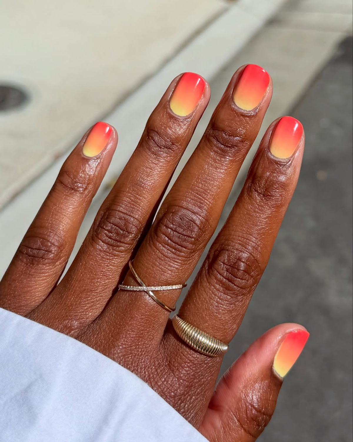 Окрім класичного розсипу свіжих, яскравих, соковитих ягід і фруктів, майстри манікюру, черпаючи натхнення не у формі фруктів, а в їхньому кольорі, пропонують нову гурманську варіацію — Fruit Water Nails. Ця інноваційна текстура з глянцевим фінішем більше нагадує відтінок води, настояної на ягодах і фруктах.
