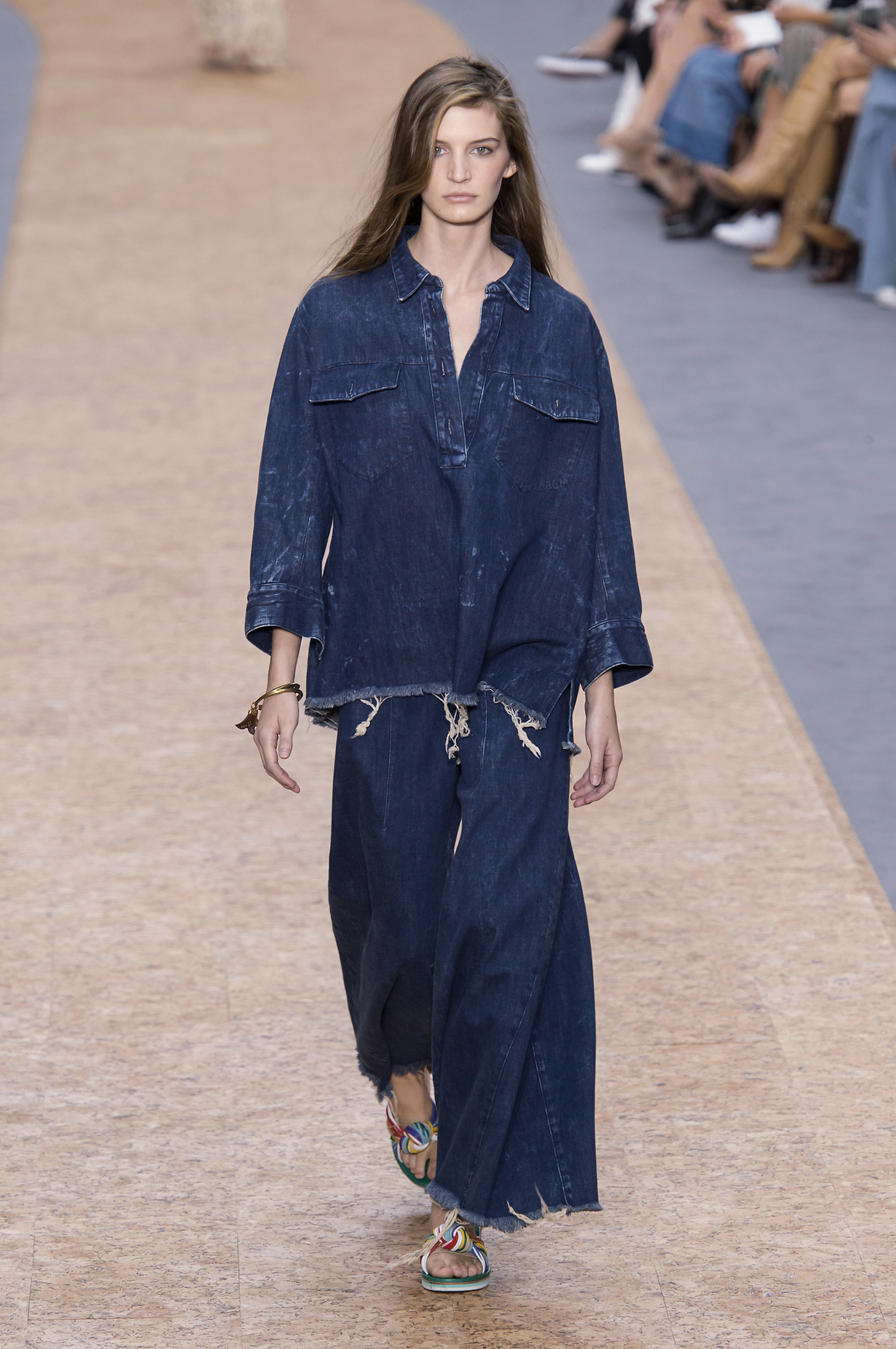 Деним в любых оттенках, металлизированные ткани выгодно преподнесут минималистичность такого макияжа и футуристичность образа.