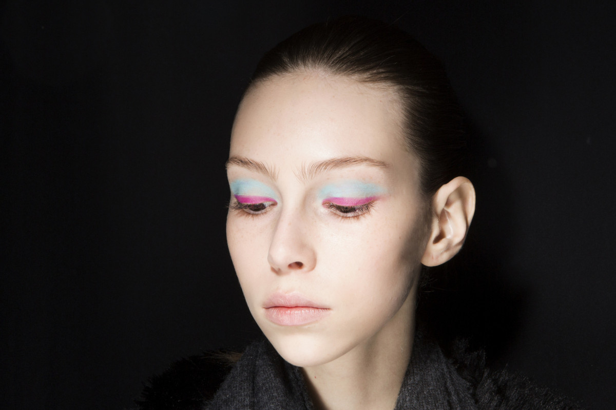Контраст электрического розового лайнера с пастельными тенями для век — свежее решение на тему smoky eyes. Причем я рекомендую вначале наносить подводку, а уже затем пальцем вбивать на все веко тени, чтобы чуть смазать границы между оттенками».
