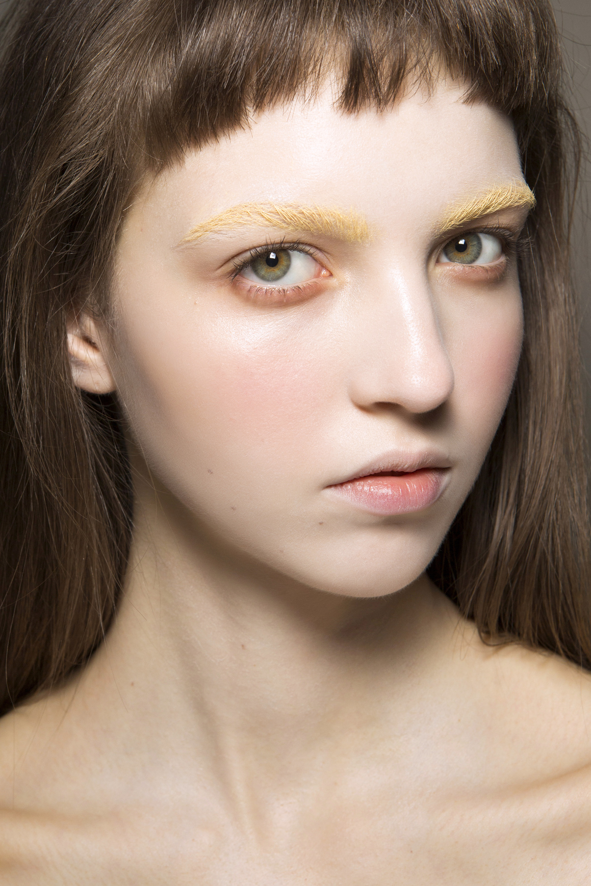 Осветленные брови — одна из ярких и свежих идей этого сезона. С ней можно бесконечно экспериментировать — достаточно обзавестись тенями в пастельной гамме. Оттенки желтого на бровях выглядят не слишком броско и в то же время модно».