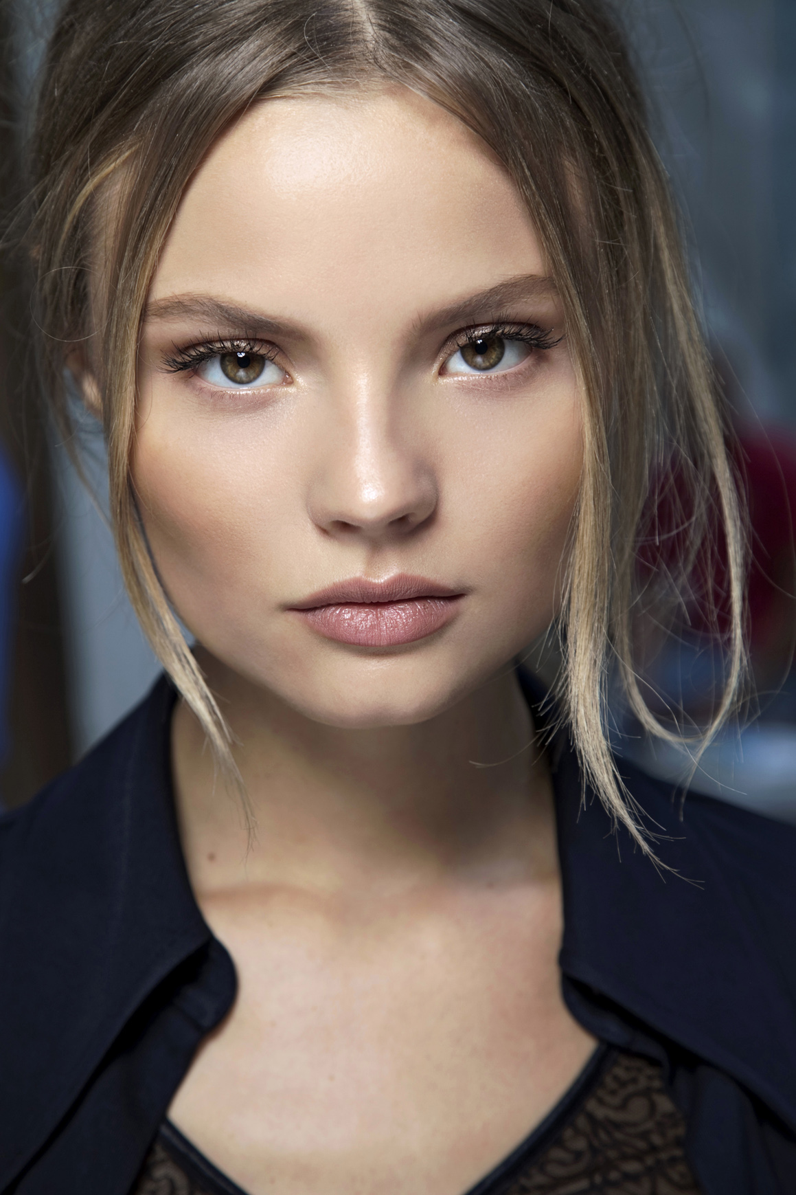 Повседневный «утилитарный» nude, аскетизм в духе эпохи Возрождения или щедро тронутые легким румянцем лица без макияжа. Если несколько лет назад идеальным считалось матовое, фарфоровое лицо, то теперь сияние, наполненность и легкий «влажный» эффект – вот к чему стремятся подиумные визажисты. В качестве акцентов – свежий розовый румянец или едва заметная линия подводки у ресниц.