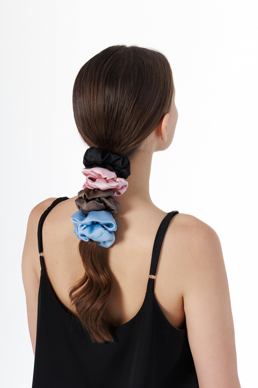У дропі представлені п’ять різних моделей сатинових резинок для волосся в трендових кольорах та формах, котрі підійдуть до безлічі образів та стильних рішень.