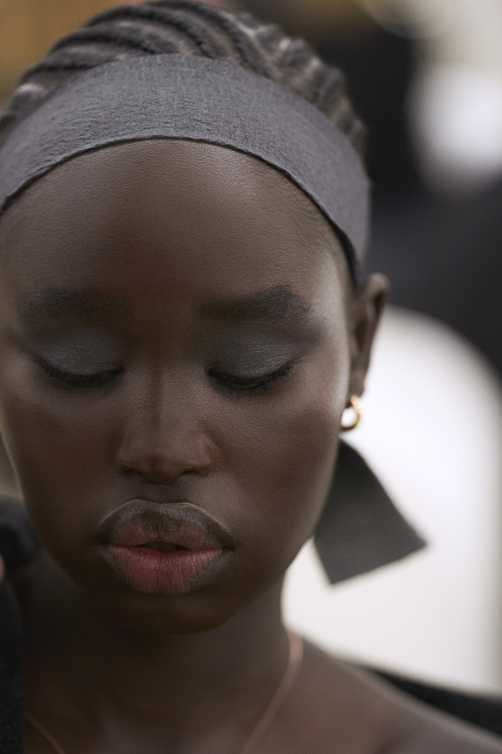 Beauty-редактор ELLE.UA Олена Бабіцька пропонує розглянути зблизька makeup-образи моделей з показу Fall-Winter 2023/24 Ready-to-Wear. Гортаємо галерею і надихаємося на естетський макіяж: пофарбовані в кілька шарів вії, як у Твіггі, губи в матовому, ледь помітному відтінку карамелі й тіні в металевій палітрі, які красиво мерехтять. Цього сезону робимо акцент на очі, майже ігноруючи губи.