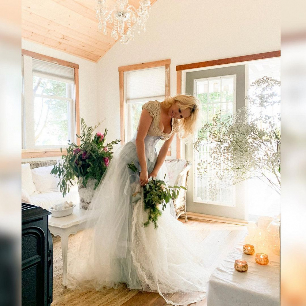 Шестая свадьба американской актрисы и модели Памелы Андерсон означала, что уже в шестой раз звезда удивит нас своим образом. Несмотря на то что актриса отдала предпочтение скромной церемонии без гостей, Памела не оставила нас без свадебных фото. В этот особый день актриса примерила винтажный образ Золушки, состоявший из атласной комбинации в стиле 40-х годов, пышной пастельной юбки из тюля, шелкового корсета с голубой лентой и длинной фаты в горошек.
