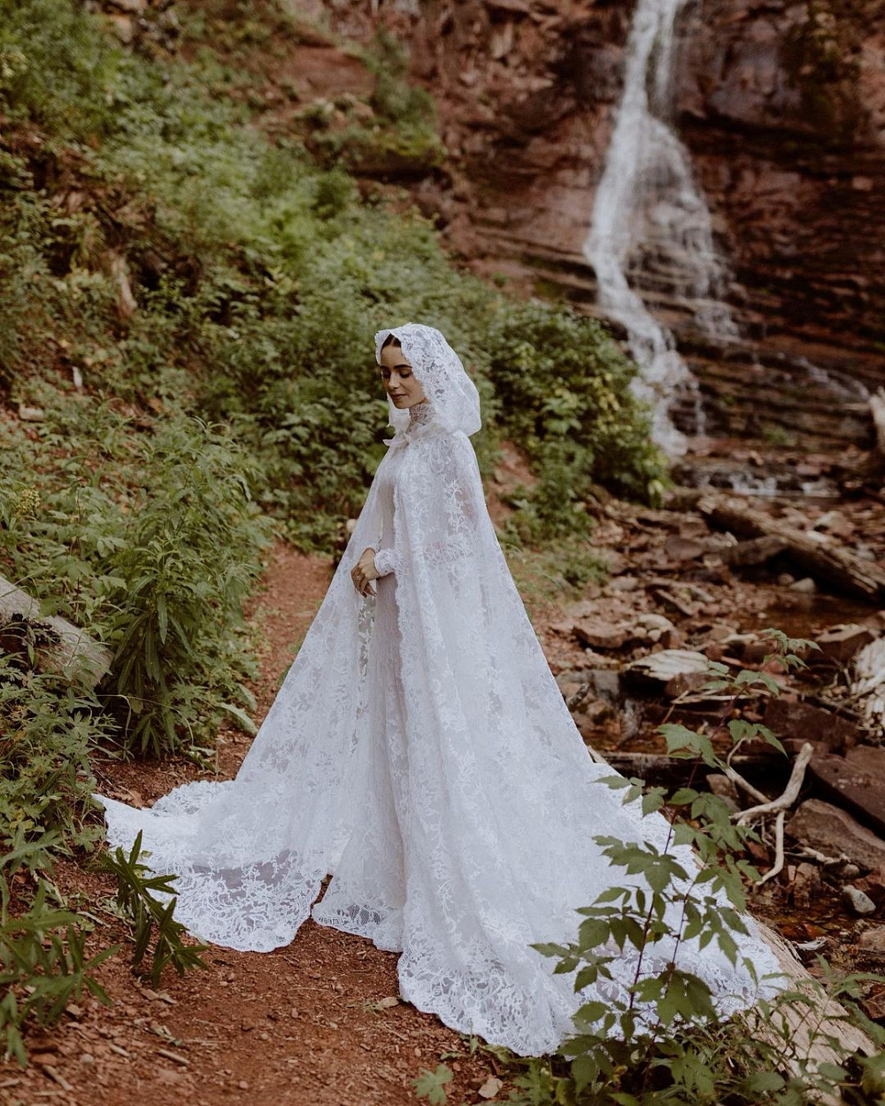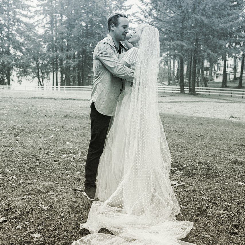 Сентябрь начался со сказочной свадьбы звезды сериала «Эмили в Париже» и режиссера Чарли Макдауэлла. Через несколько дней после торжества все социальные сети потрясли снимки влюбленной пары на фоне водопадов и леса. Актриса выбрала роскошное облегающее кружевное платье с длинными рукавами от Ralph Lauren, а магический образ дополнил кружевной капюшон с цветочными узорами.