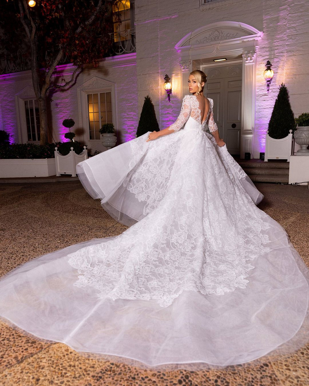 Свадебный сезон 2021 года завершило торжество Пэрис Хилтон, которая прошла к алтарю в кружевном платье Oscar de la Renta с роскошной длинной вуалью под живое исполнение Can’t Help Falling in Love. Звезда реалити-шоу отбросила скромность и таинство, устроив масштабное трехдневное торжество с впечатляющим списком гостей, среди которых были Ким Кардашьян, Эмма Робертс, Кайл Ричардс и многие другие. Помимо главного платья в тот вечер Пэрис блистала еще в трех образах.