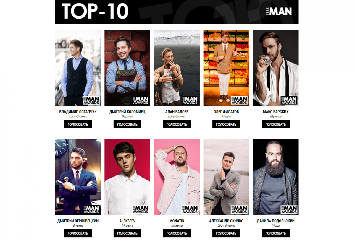 В топ-10 вошли музыканты Макс Барских, Monatik и Alekseev, телеведущие Владимир Остапчук и Александр Скичко, бармен Дмитрий Коломиец, барбер Дмитрий Верховецкий, режиссер Алан Бадоев, продюсер Олег Филатов, а также байер Данила Подольский.