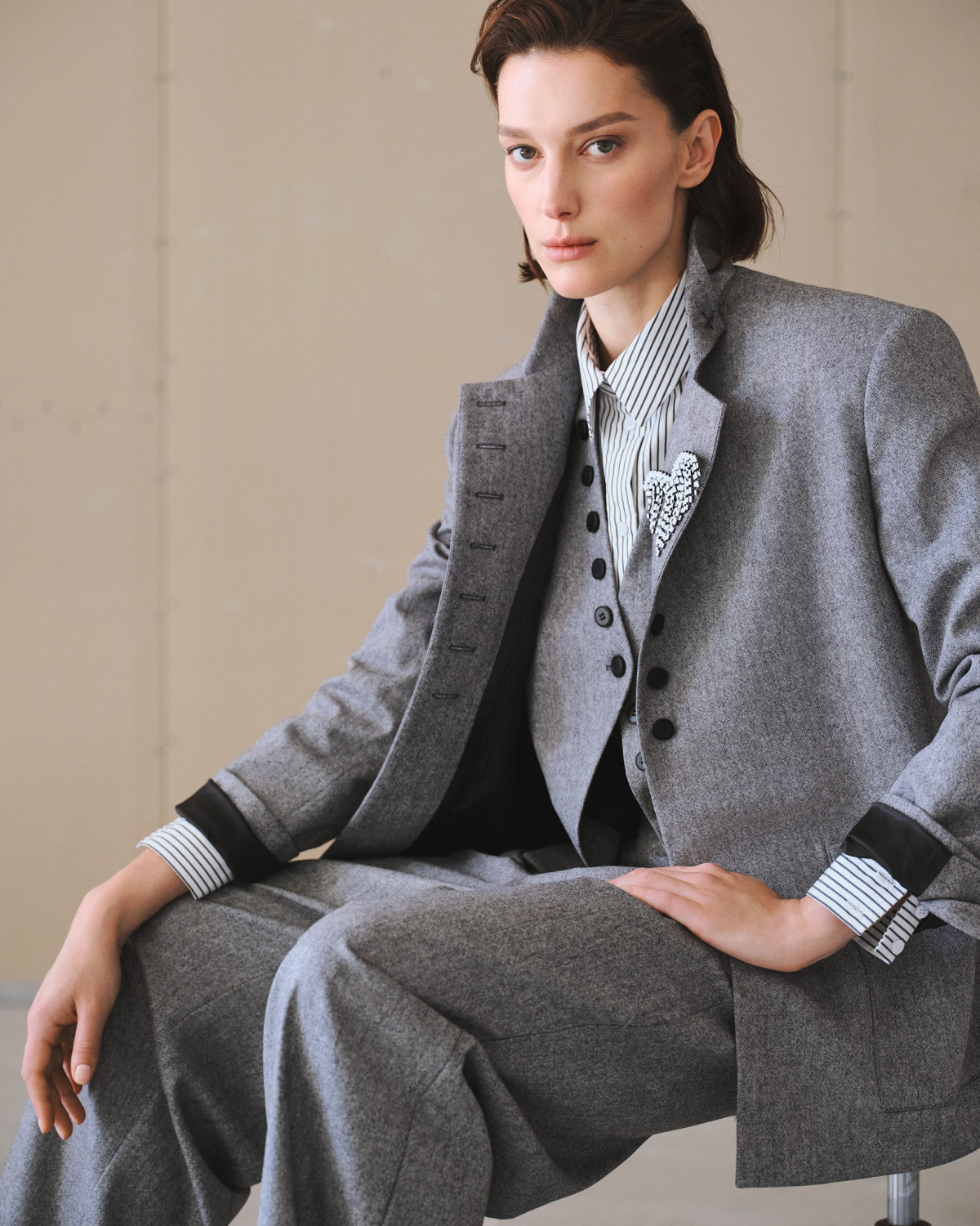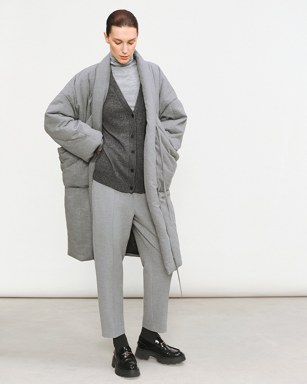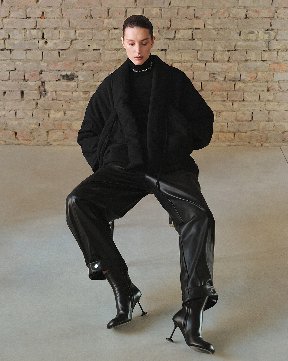 Немає нічого красивішого, ніж поєднання важких силуетів і фактур з легкими, напівпрозорими й невагомими. У моєму розумінні багатошаровість — це про велику кількість одягу, але без відчуття важкості, це про таємничість і сексуальність. Тому мені найбільше відгукуються костюмні тканини з прозорими, мереживними або тими ж в’язаними. Це виглядає надзвичайно затишно.